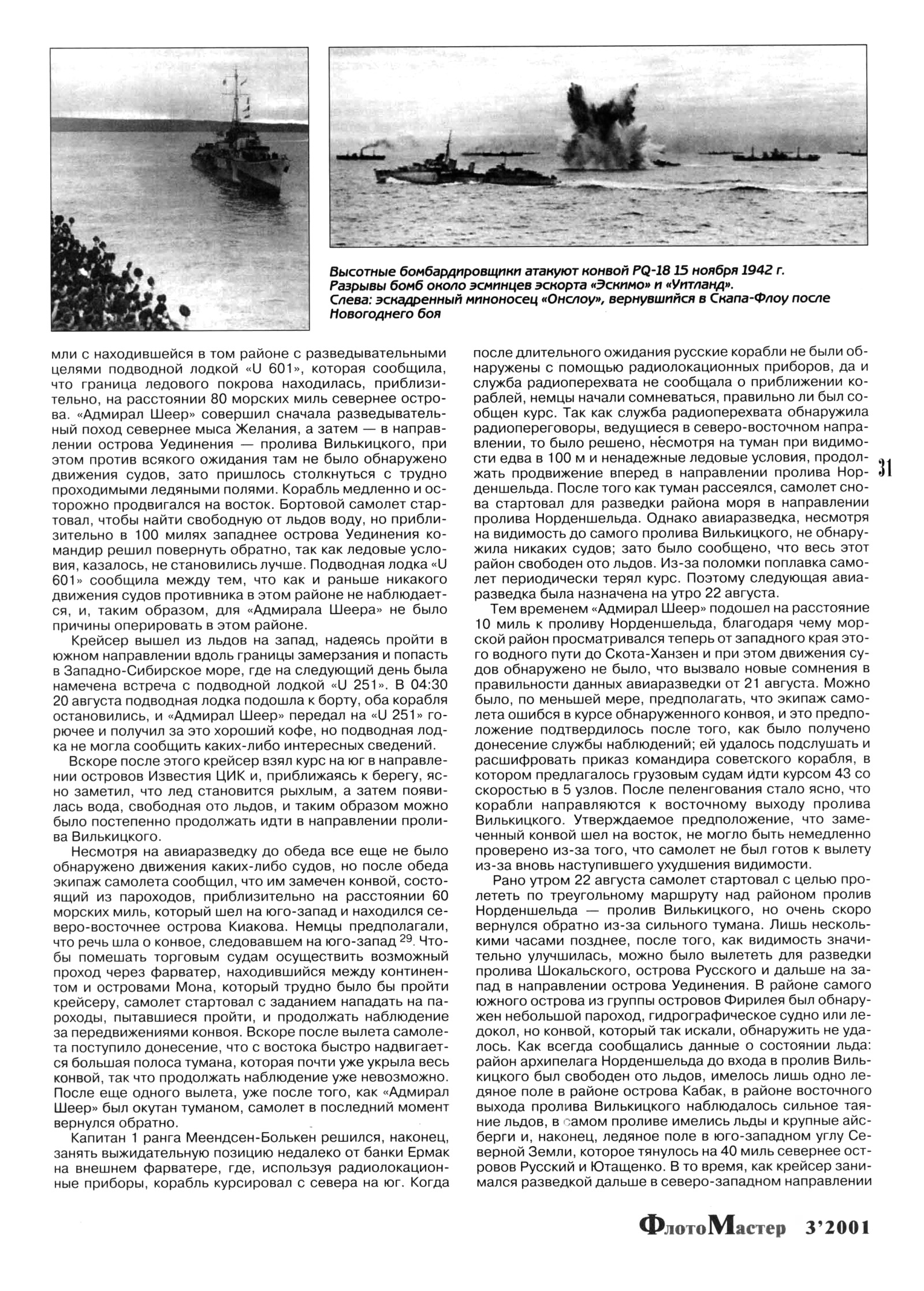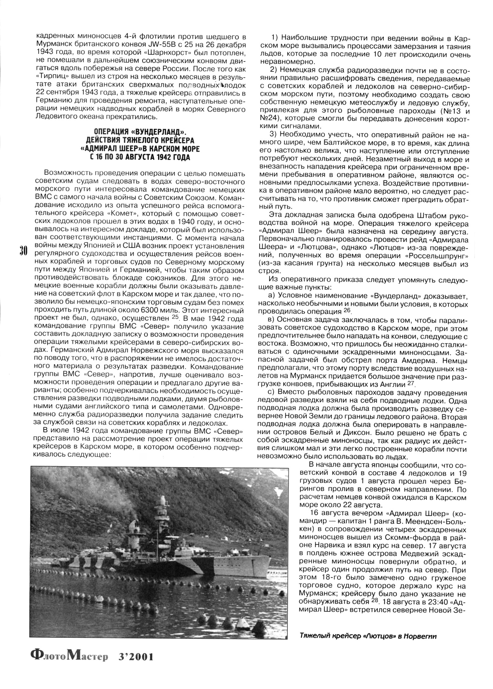 С 16 ПО 30 АВГУСТА 1942 ГОДАВозможность проведения операции с целью помешать советским судам следовать в водах северо-восточного морского пути интересовала командование немецких ВМС с самого начала войны с Советским Союзом. Командование исходило из опыта успешного рейса вспомогательного крейсера «Комет», который с помощью советских ледоколов прошел в этих водах в 1940 году, и основывалось на интересном докладе, который был использован соответствующими инстанциями. С момента начала войны между Японией и США возник проект установления регулярного судоходства и осуществления рейсов военных кораблей и торговых судов по Северному морскому пути между Японией и Германией, чтобы таким образом противодействовать блокаде союзников. Для этого немецкие военные корабли должны были оказывать давление на советский флот в Карском море и так далее, что позволило бы немецко-японским торговым судам без помех проходить путь длиной около 6300 миль. Этот интересный проект не был, однако, осуществлен