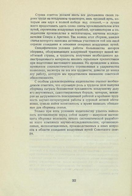 Только при этих условиях издательству удалось выполнить поставленную перед собой задачу — выпуском настоящего сборника положить начало систематической разработке всего комплекса научно-исследовательских, организационных, эксплоатационных, производственных и иных вопросов в области созидания воздушных путей Советского севера.