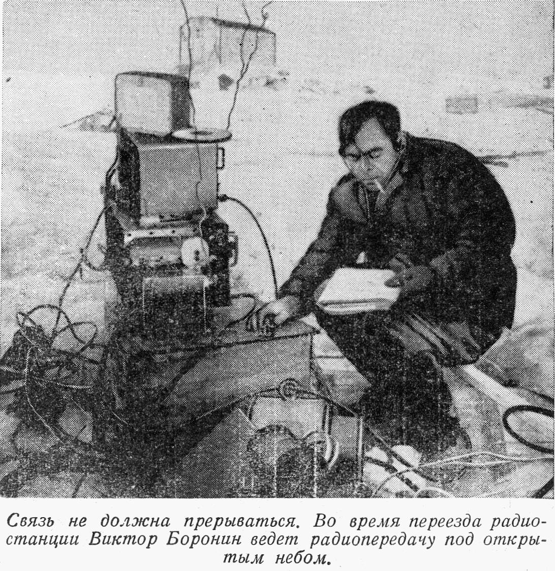 Связь с Большой Землей будет держать Виктор Тимофеевич Воронин («заврадио», как мы его называем). Ему 32 года. Виктор Тимофеевич зимовал в Арктике, плавал и на ледоколах и на судах атлантических сельдяных флотилий. Бывал он и в Антарктике. Во время Третьей антарктической экспедиции он участвовал в санно-тракторном походе через ледяной континент. Виктор — настоящий снайпер эфира, он не только прекрасный радист-оператор, но и большой знаток радиотехники.