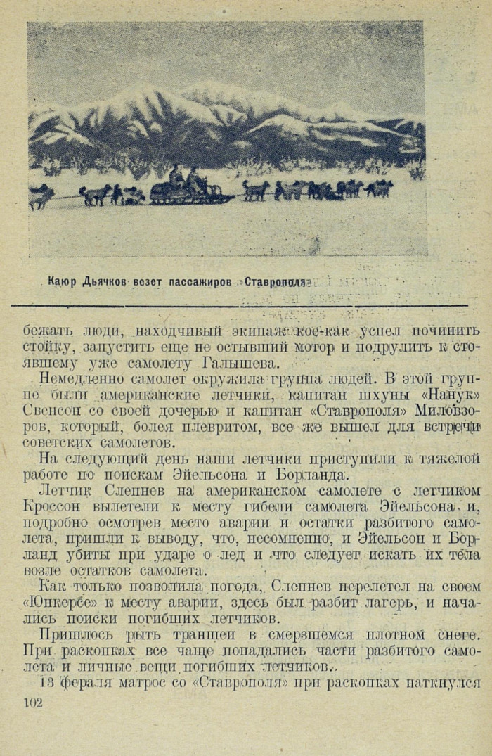 на торчащую на снега ногу в меховом сапоге. Американский летчик Гильом в откопанном трупе узнал Борланда. Черев 4 дня было найдено и тело Эйельсона.