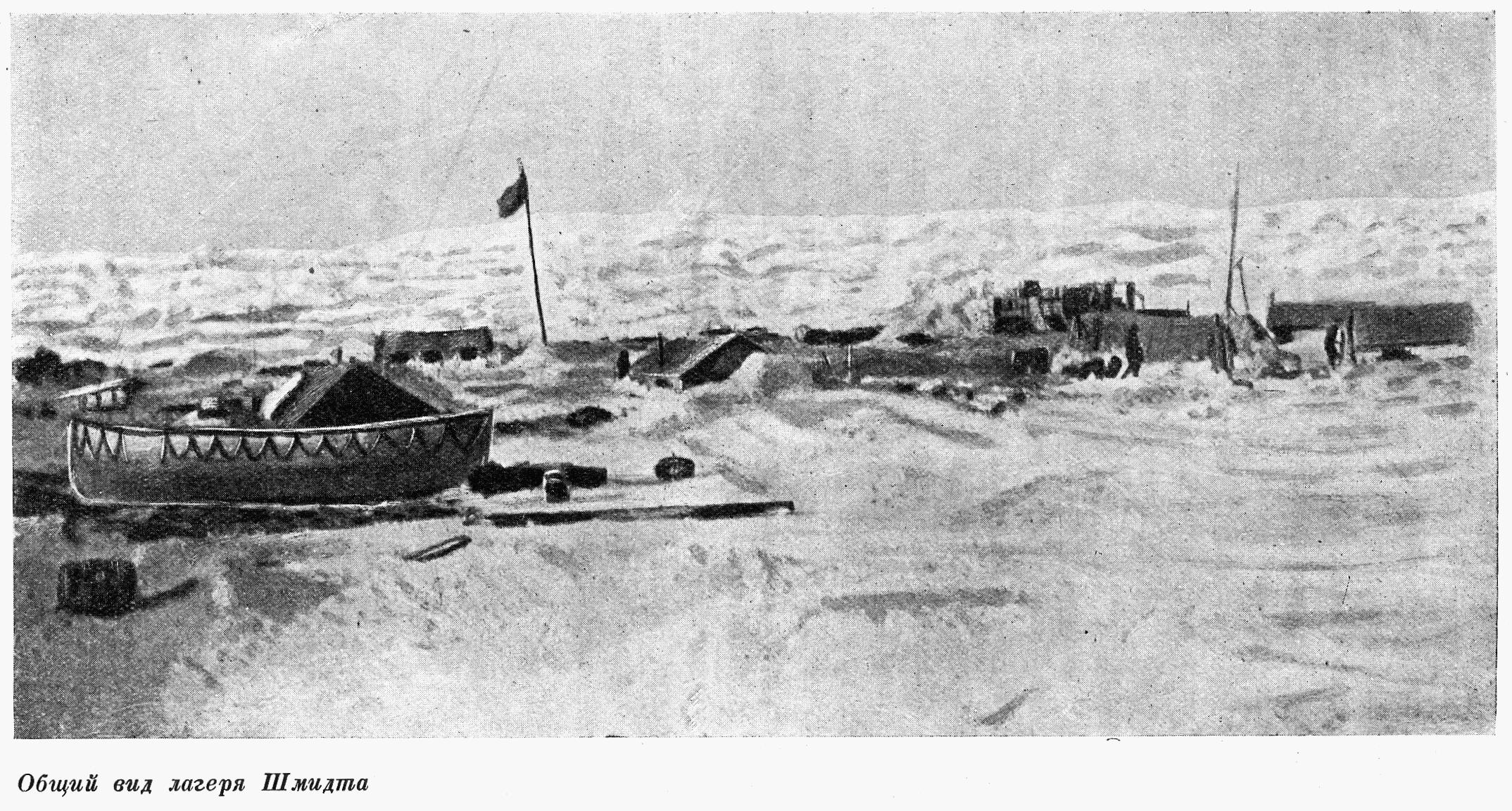 Первой просыпается радиопалатка — в шесть часов утра. Радист Кренкель начинает работать с Уэлленом, происходит обмен очередными метеорологическими сводками и прогнозами, идет разговор о самолетах, поступают новости, полученные с материка. В свою очередь мы передаем последние сообщения о положении лагеря: об очередных сжатиях, о поломке аэродрома, о создании нового. Одновременно с Кренкелем просыпается обитающий в той же палатке Шмидт.