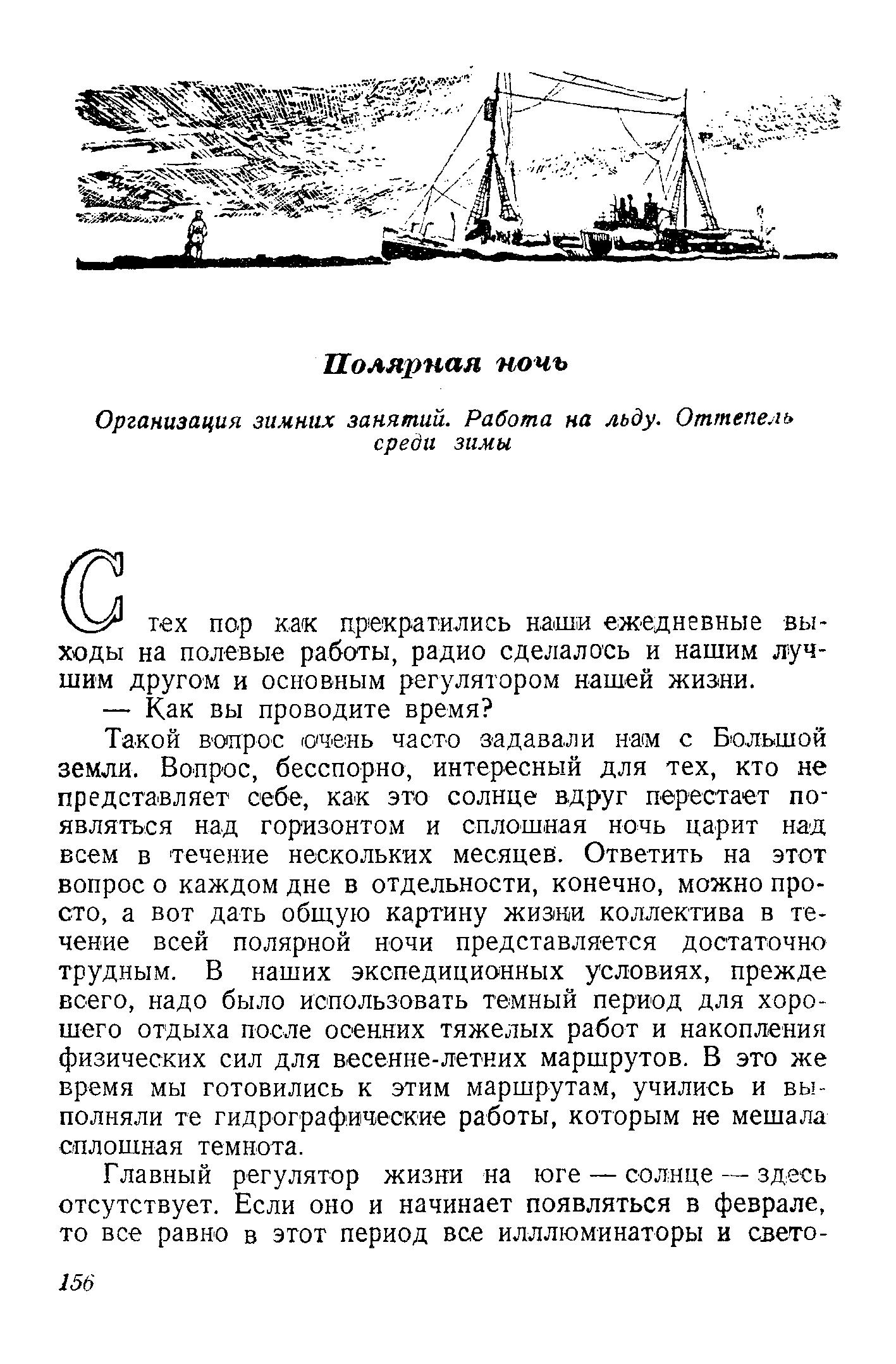 Полярная ночьОрганизация зимних занятий. Работа на льду. Оттепель среди зимыС тех пор как прекратились каши ежедневные выходы на полевые работы, радио сделалось и нашим лучшим другом и основным регулятором нашей жизни.