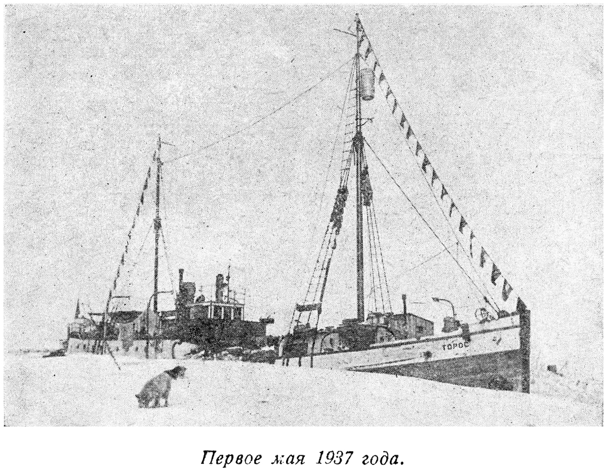 10 декабря мы были и удивлены и обрадованы прилетевшей к нам телеграммой из Гренландского моря: «Сердечный привет всем зимовщикам «Тороса» из Гренландского моря тчк Готовим материал для ледового прогноза 1937 года тчк Бот Нерпа широта 74°20 меридиан Гринвича Моржов Шумский».