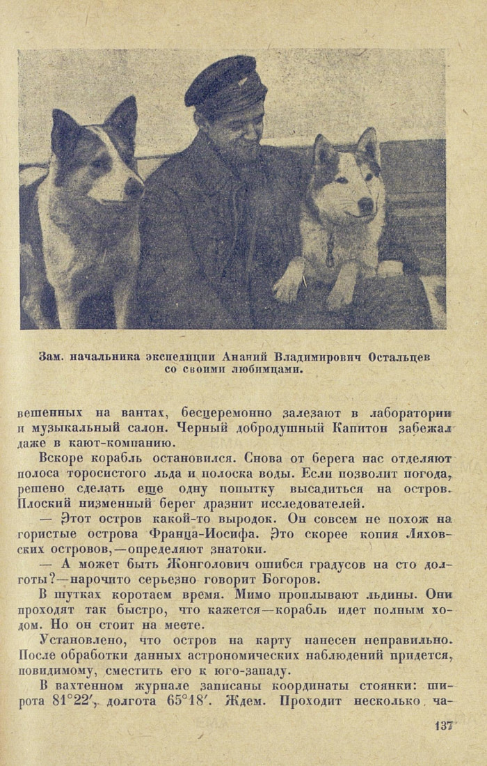 В разведочную партию включены научные работники, штурман, Остальцев и Журавлев. Собаки пойдут до полыньи, дальше партия будет переправляться па резиновой лодке. В случае изменения направления ветра «Садко» поднимет сигналы и даст гудки. Погода подозрительная. Солнца нет. Жонголович стойко ожидает появления солнца для астрономических наблюдений.