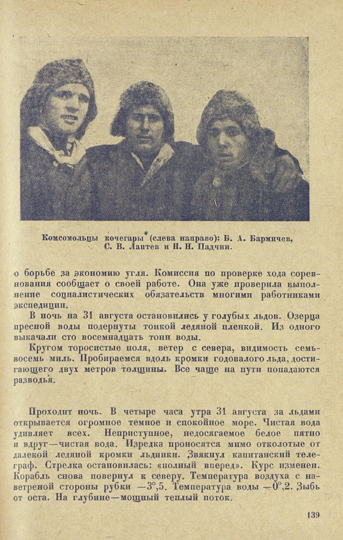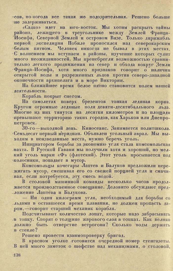 — Ни один килограмм угля, необходимый для борьбы со льдами в оставшееся время плавания, не должен пропасть даром, — говорит старший механик корабля.
