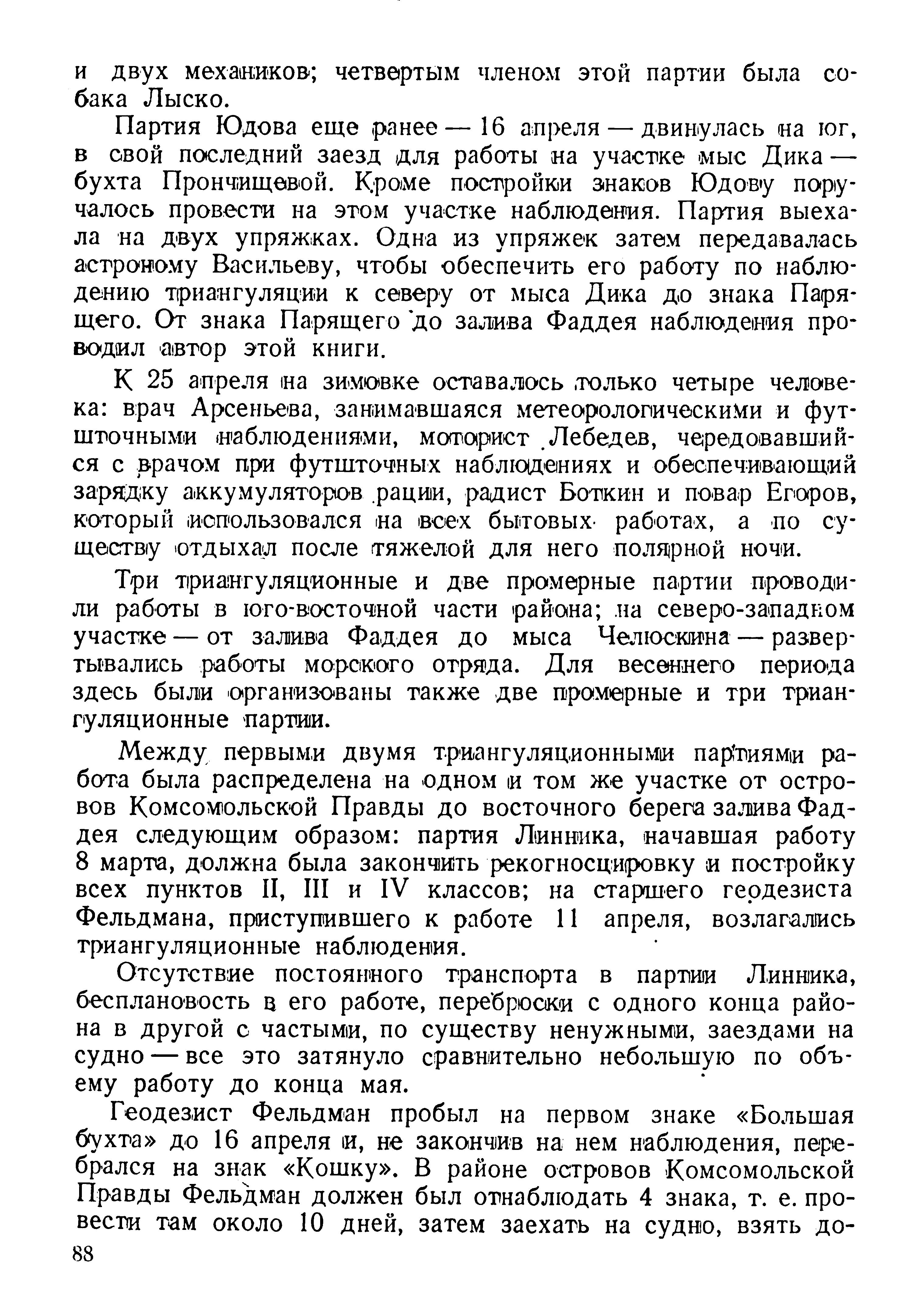 Партия Юдова еще ранее — 16 апреля — двинулась на юг, в свой последний заезд для работы на участке мыс Дика — бухта Прончищевой. Кроме постройки знаков Юдову поручалось провести на этом участке наблюдения. Партия выехала на двух упряжках. Одна из упряжек затем передавалась астроному Васильеву, чтобы обеспечить его работу по наблюдению триангуляции к северу от мыса Дика до знака Парящего. От знака Парящего до залива Фаддея наблюдения проводил автор этой книги.