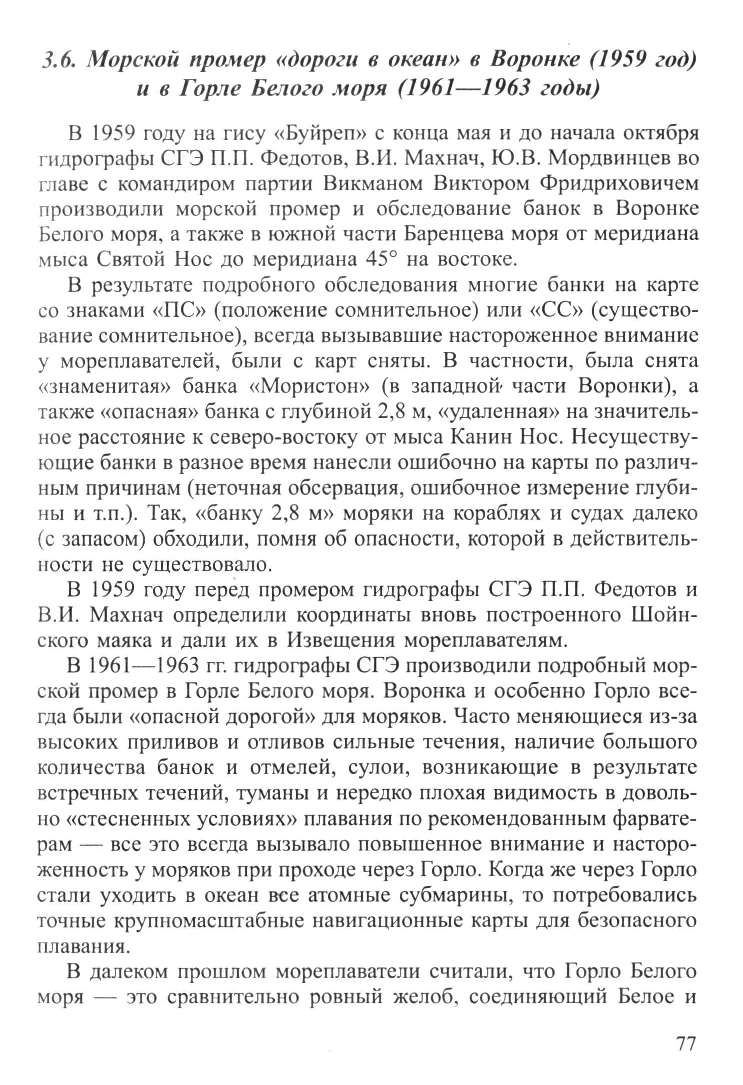 3.6. Морской промер «дороги в океан» в Воронке (1959 год) и в Горле Белого моря (1961—1963 годы) ... 77