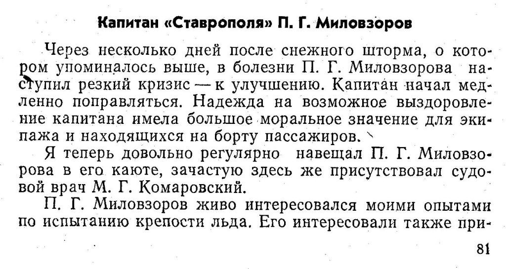 Я теперь довольно регулярно навещал П. Г. Миловзорова в его каюте, зачастую здесь же присутствовал судовой врач М. Г. Комаровский.