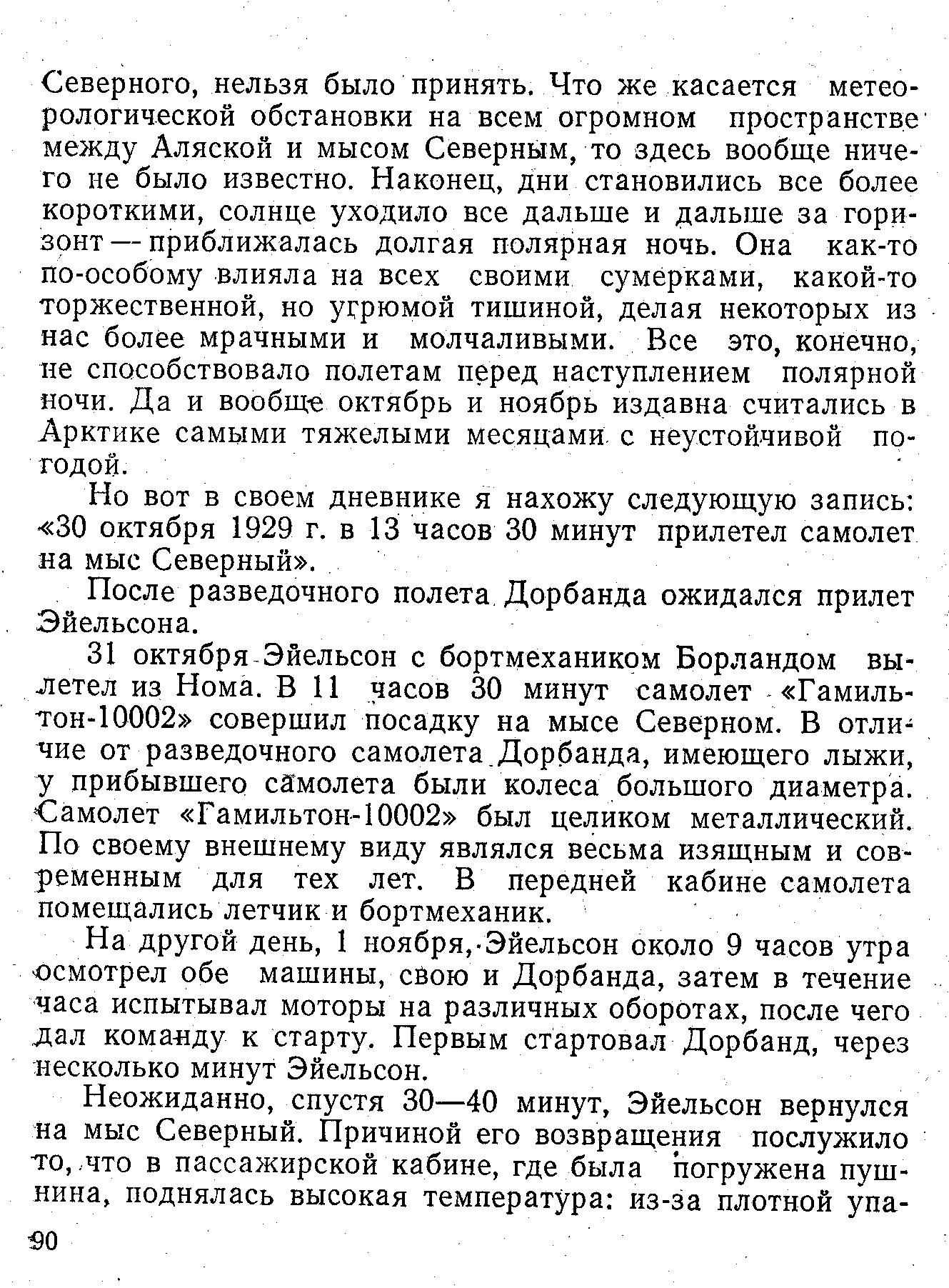 Но вот в своем дневнике я нахожу следующую запись: «30 октября 1929 г. в 13 часов 30 минут прилетел самолет на мыс Северный».