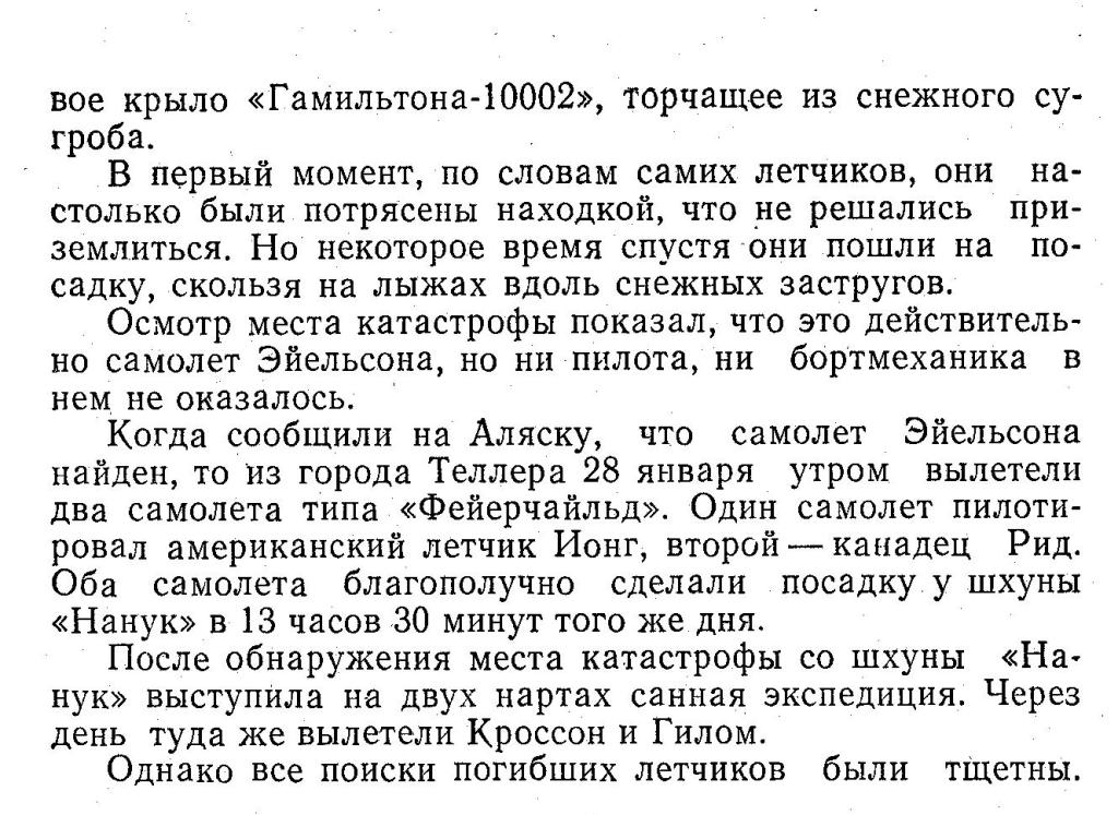 Только два с лишним месяца спустя были выяснены обстоятельства полета Эйельсона и бортмеханика Борланда на самолете «Гамильтон-10002»...