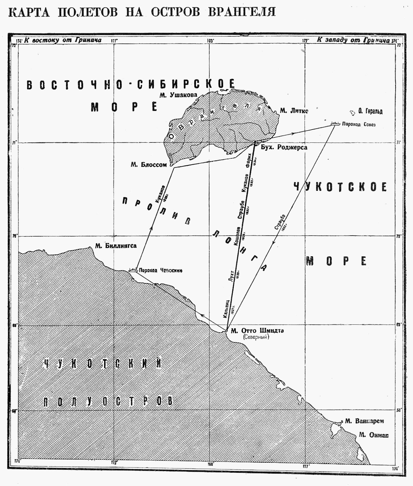 Надеваю валенки, полушубок, хватаю шапку, карту острова Врангеля, и я готов. Садимся в моторку и плывем к самолету. Тут произошел маленький инцидент: к трем прилетевшим на самолете прибавилось еще трое, и, когда пошли на взлет, не смогли оторваться. Моторы отработали свой срок и не давали должного количества оборотов.