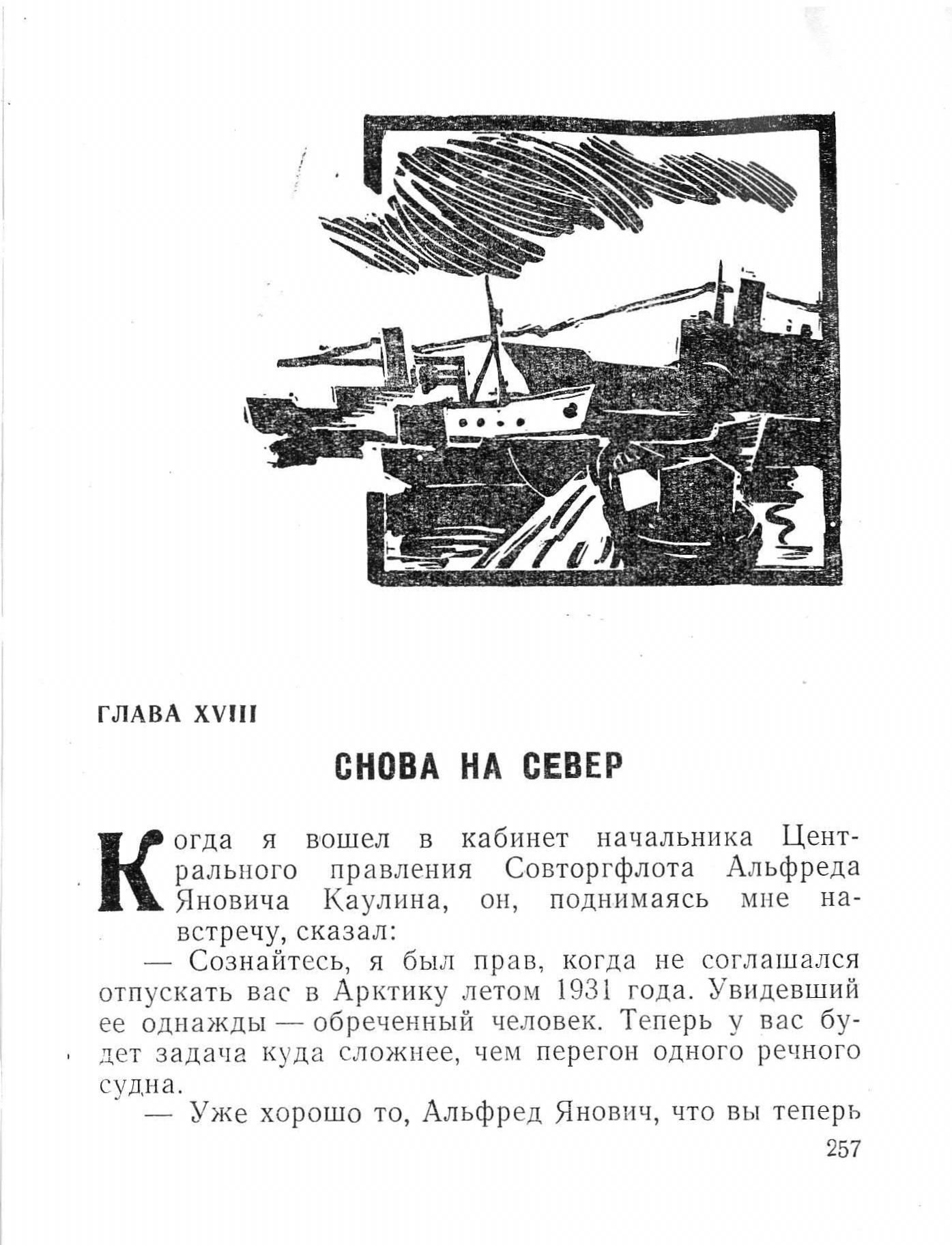ГЛАВА XVIIIСНОВА НА СЕВЕРКогда я вошел в кабинет начальника Центрального правления Совторгфлота Альфреда Яновича Каулина, он, поднимаясь мне навстречу, сказал: