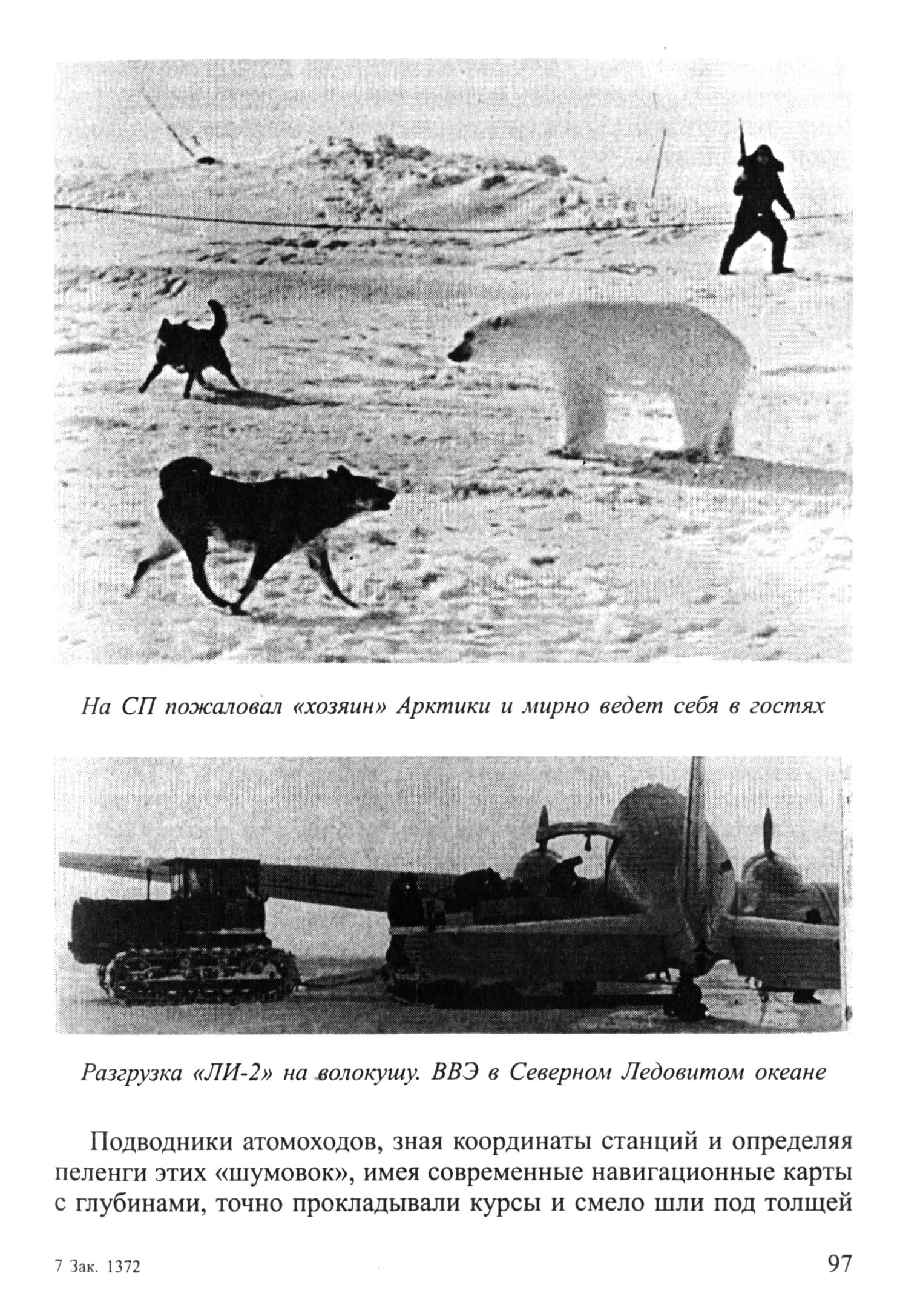 На СП пожаловал «хозяин» Арктики и мирно ведет себя в гостяхРазгрузка «ЛИ-2» на волокушу. ВВЭ в Северном Ледовитом океанеПодводники атомоходов, зная координаты станций и определяя пеленги этих «шумовок», имея современные навигационные карты с глубинами, точно прокладывали курсы и смело шли под толщей