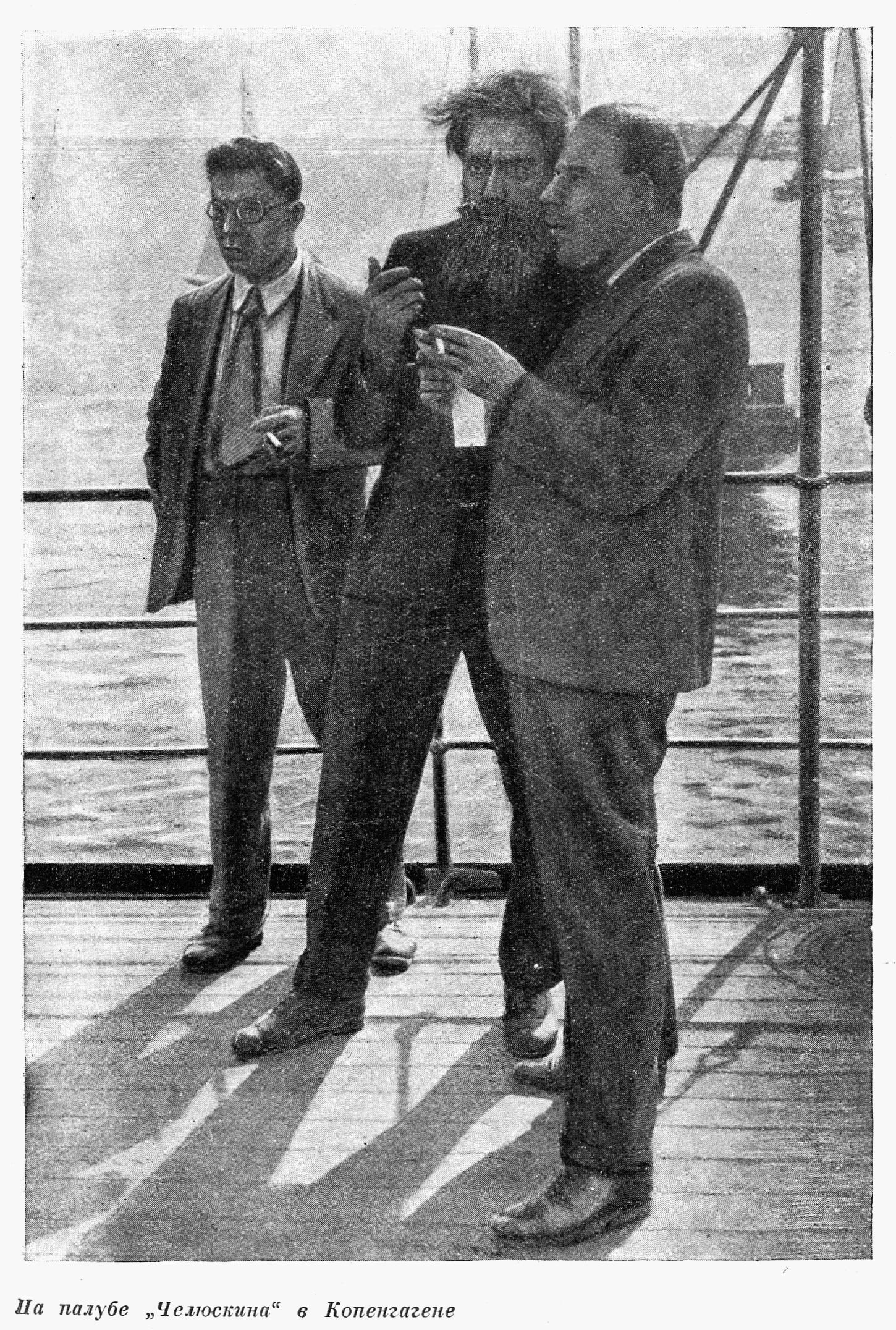 Стоянка в Копенгагене показала нам, насколько живо и заграница заинтересовалась нашим походом. Выдающиеся ученые и писатели посетили пароход или встретились с нами у полпреда СССР. На пароход непрерывно приходили экскурсии из различных слоев населения.