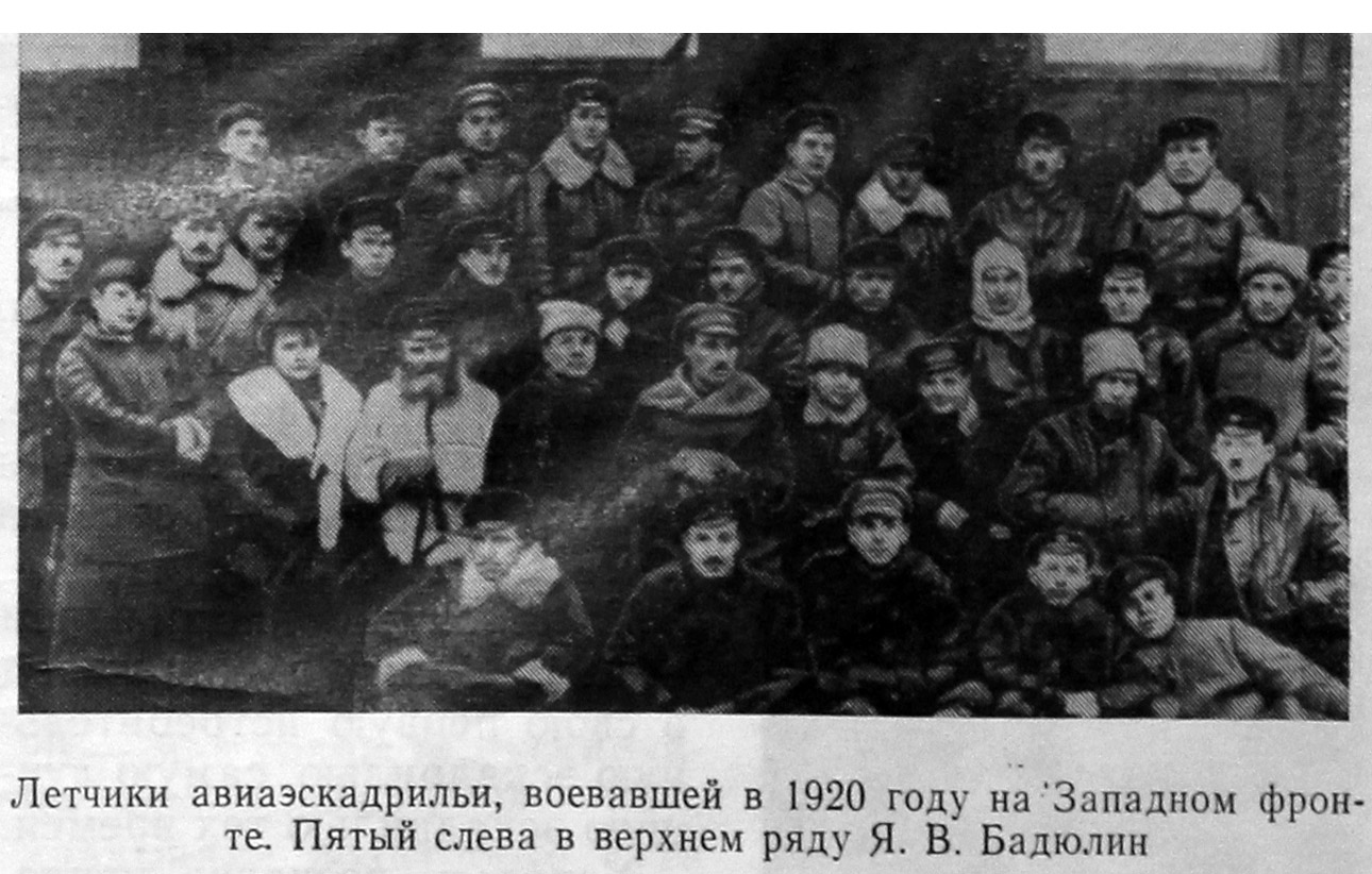 Кто такой Сапожников, я узнал позже. Но замечательное слово «красновоенлет», рожденное революцией и гражданской войной, осталось в памяти на всю жизнь. Я счастлив, что в начале своего летного пути попал под командование одного из той прославленной плеяды красных военных летчиков — Якова Васильевича Бадюлина, человека деятельного, доброго, оставившего в моей душе самые лучшие воспоминания.