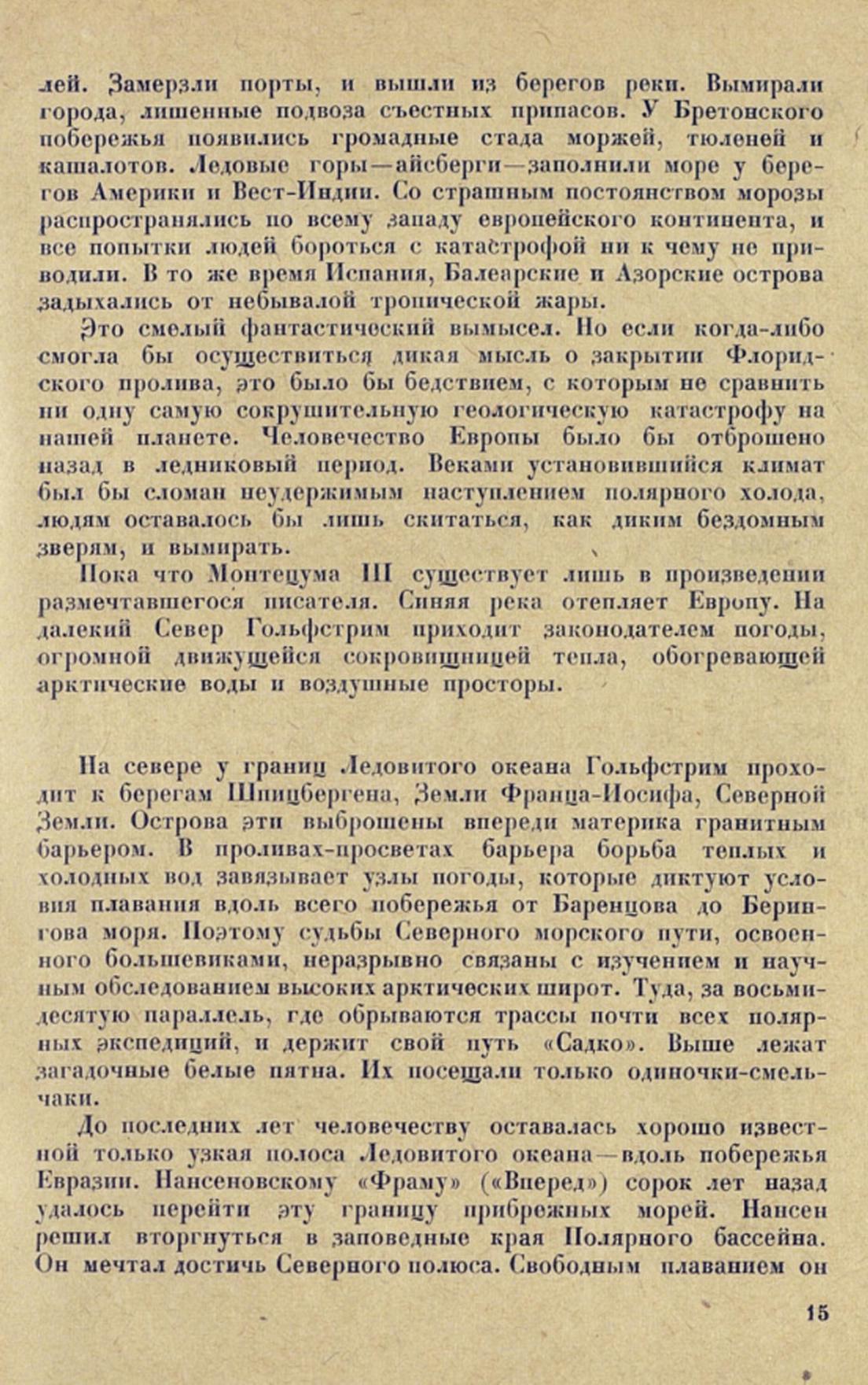 Пока что Моитецума III существует лишь в произведении размечтавшегося писателя. Синяя река отепляет Европу. На далекий Север Гольфстрим приходит законодателем погоды, огромной движущейся сокровищницей тепла, обогревающей арктические воды и воздушные просторы.