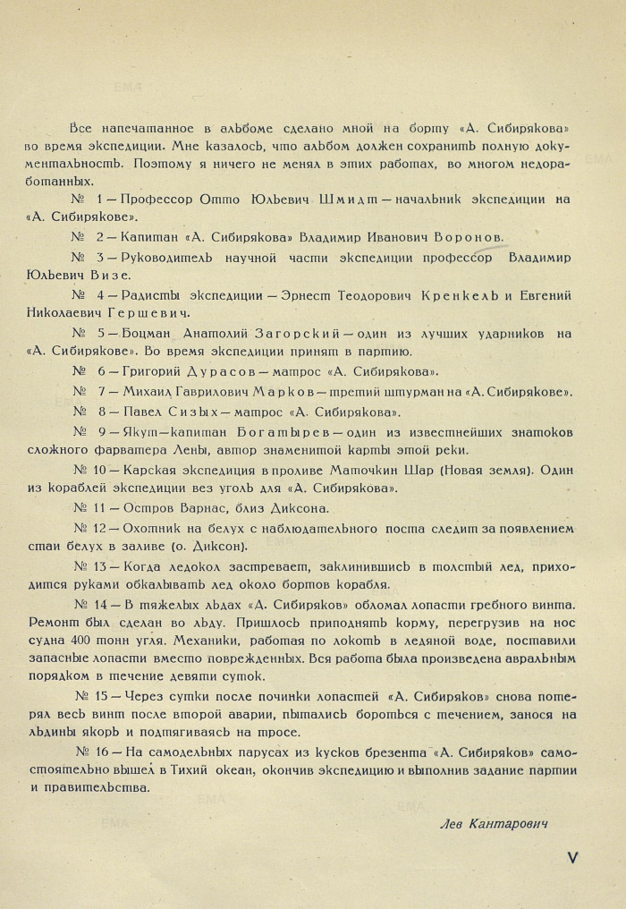 Все напечатанное в альбоме сделано мной на борту "А. Сибирякова" во время экспедиции. Мне казалось, что альбом должен сохранить полную документальность. Поэтому я ничего не менял в этих работах, во многом недоработанных.