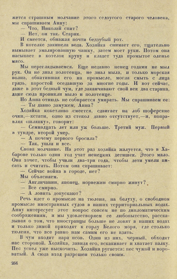 Речь идет о промысле на тюленя, на белуху, о свободном промысле иностранных судов в наших территориальных водах. Анну интересует этот вопрос совсем не но дипломатическим соображениям, и мы удовлетворяем ее любопытство, рассказывая о том, что иностранцы больше не ловят в наших водах и только зимой приходят к горлу Белого моря, где столько тюленя, что все равно нам самим его не взять.