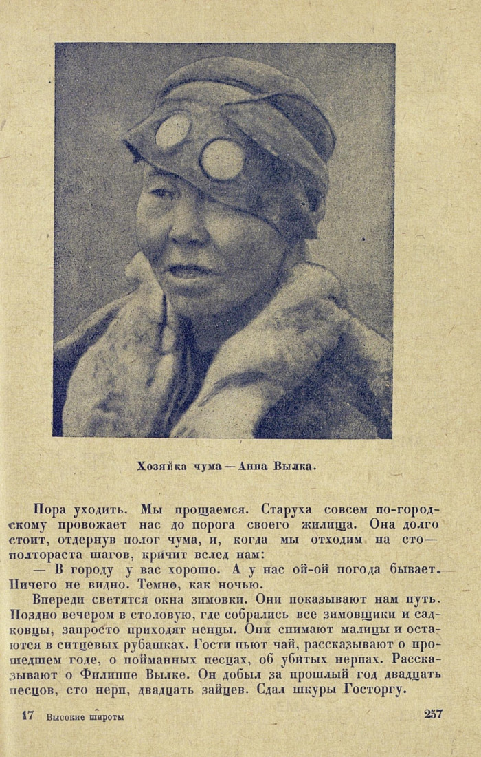 Впереди светятся окна зимовки. Они показывают нам путь. Поздно вечером в столовую, где собрались все зимовщики и садковцы, запросто приходят ненцы. Они снимают малицы и остаются в ситцевых рубашках. Гости пьют чай, рассказывают о прошедшем годе, о пойманных песцах, об убитых нерпах. Рассказывают о Филиппе Вылке. Он добыл за прошлый год двадцать песцов, сто нерп, двадцать зайцев. Сдал шкуры Госторгу.