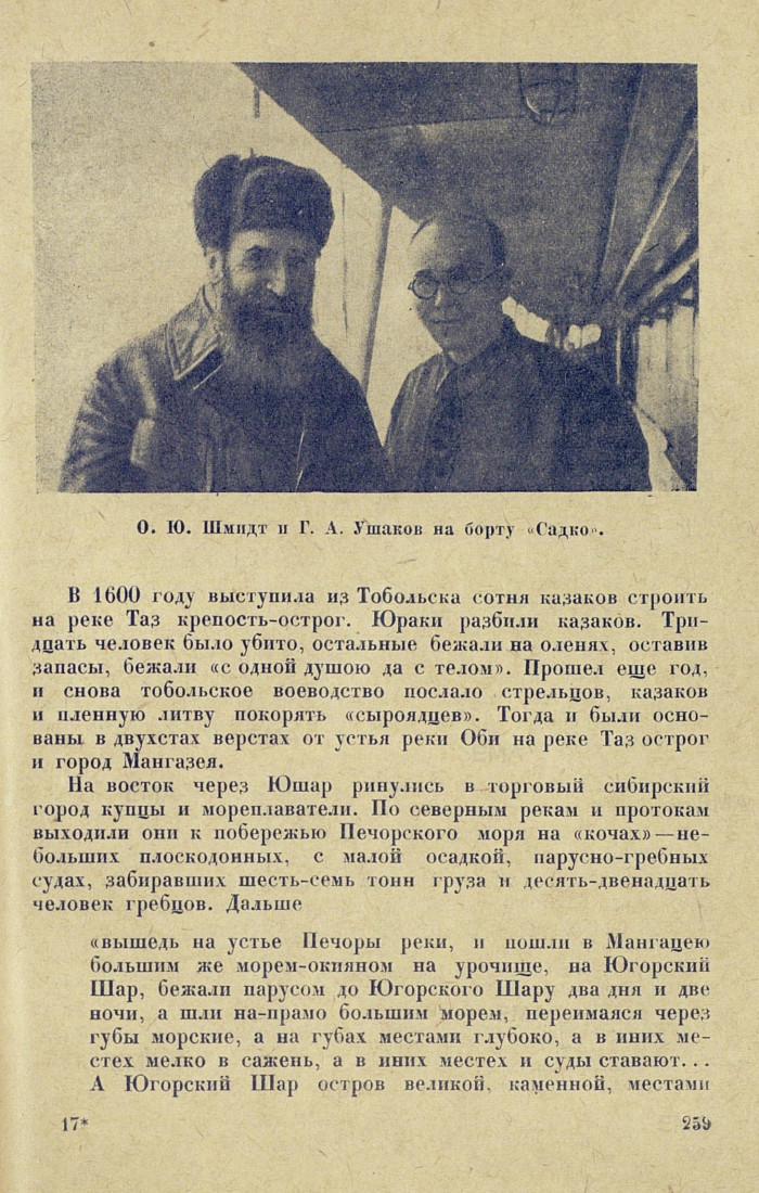 Утром 22 сентября на рейд Югорского Шара пришел «Литке». Возвращающийся на борту ледореза после объезда полярных станций и зимовок О. Ю. Шмидт вскоре приезжает на «Садко». Он обходит лаборатории, знакомится с результатами научных работ, беседует с членами экспедиции. Вечером подошел «Сибиряков». Он идет на Диксон. В проливе, вчера еще пустынном, неожиданно собралась целая эскадра. Оживленным клубом стала кают-компания «Садко», куда съехались моряки и полярники с других судов.