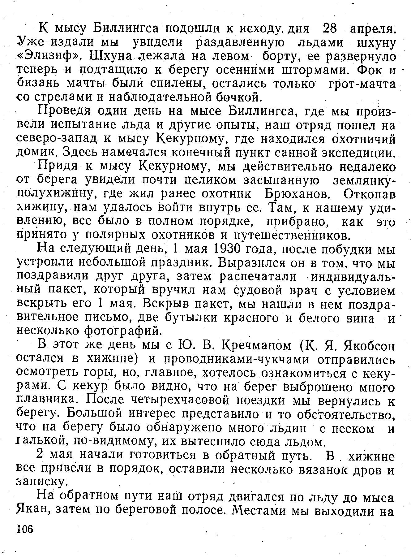 щего содержания: «Испытания сопротивляемости льда ознакомления его поверхности других научных целей организуется санная экспедиция мыс Биллингса. Выход предполагаем апреле. Студент ЛКИ Дубравин, метеоролог Kpечман».