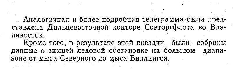 Аналогичная и более подробная телеграмма была представлена Дальневосточной конторе Совторгфлота во Владивосток.