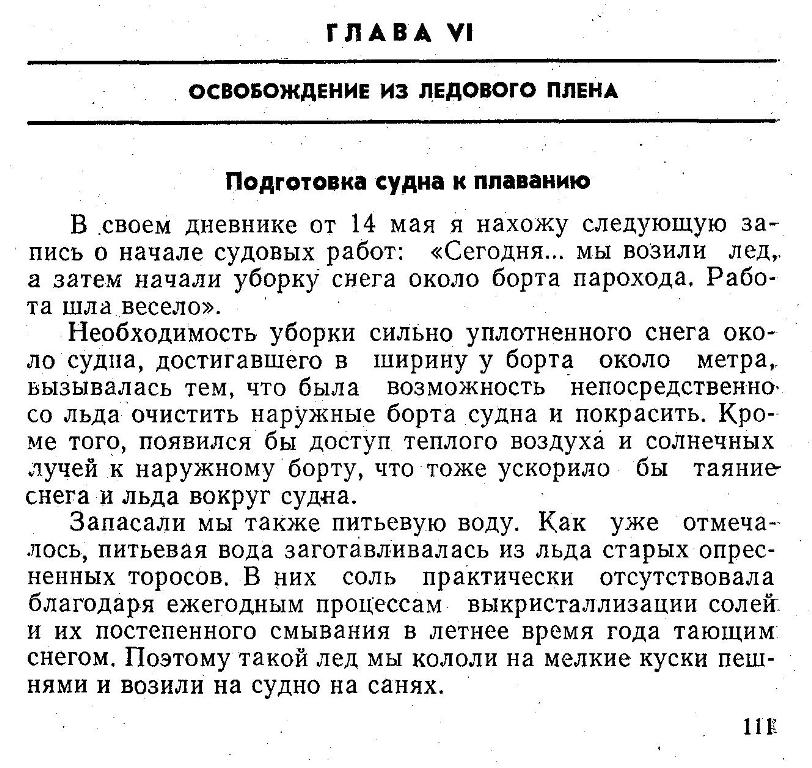 В своем дневнике от 14 мая я нахожу следующую запись о начале судовых работ: «Сегодня... мы возили лед,, а затем начали уборку снега около борта парохода. Работа шла весело».
