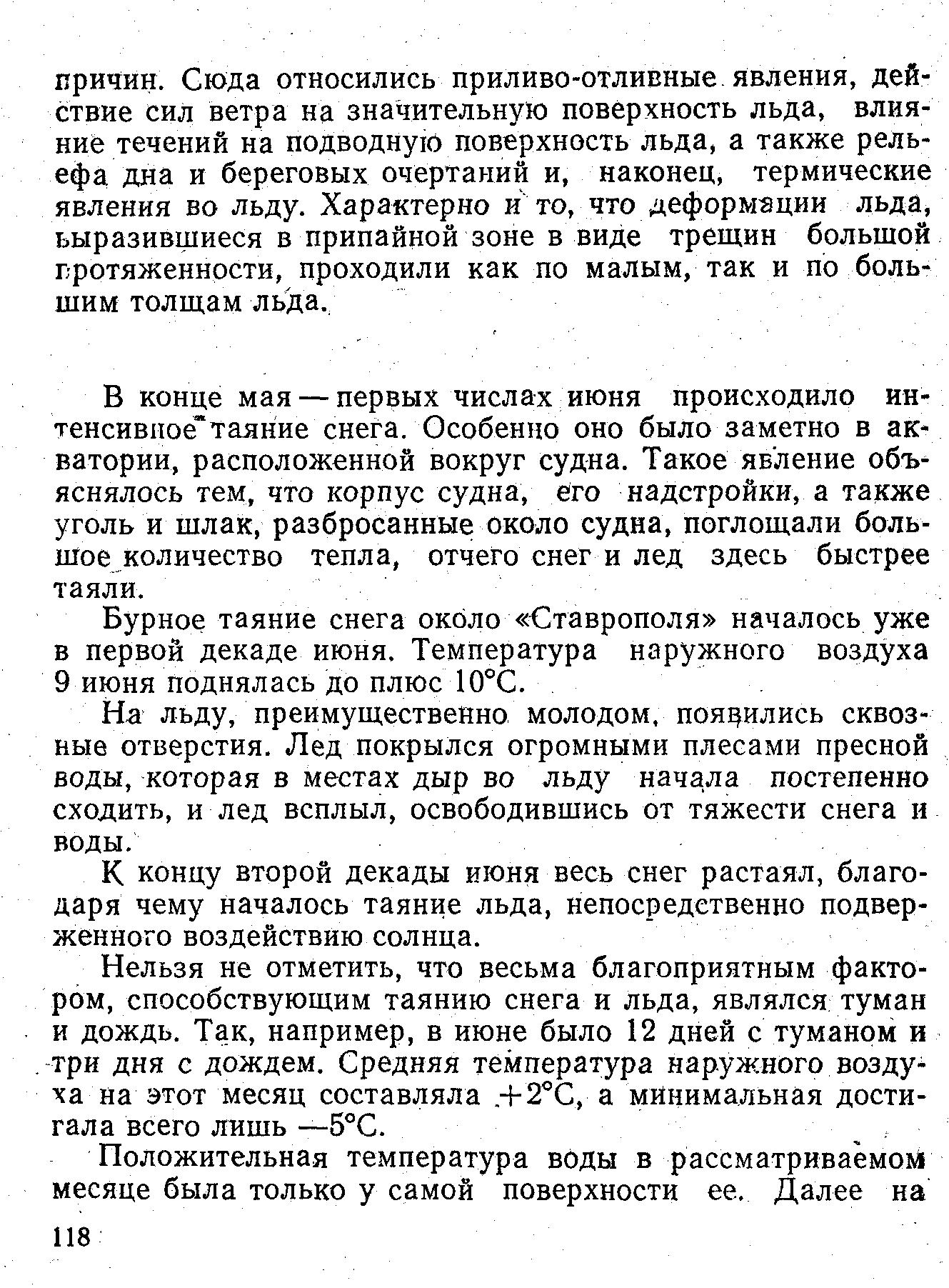Нельзя не отметить, что весьма благоприятным фактором, способствующим таянию снега и льда, являлся туман и дождь. Так, например, в июне было 12 дней с туманом и три дня с дождем. Средняя температура наружного воздуха на этот месяц составляла + 2°С, а минимальная достигала всего лишь —5°С.