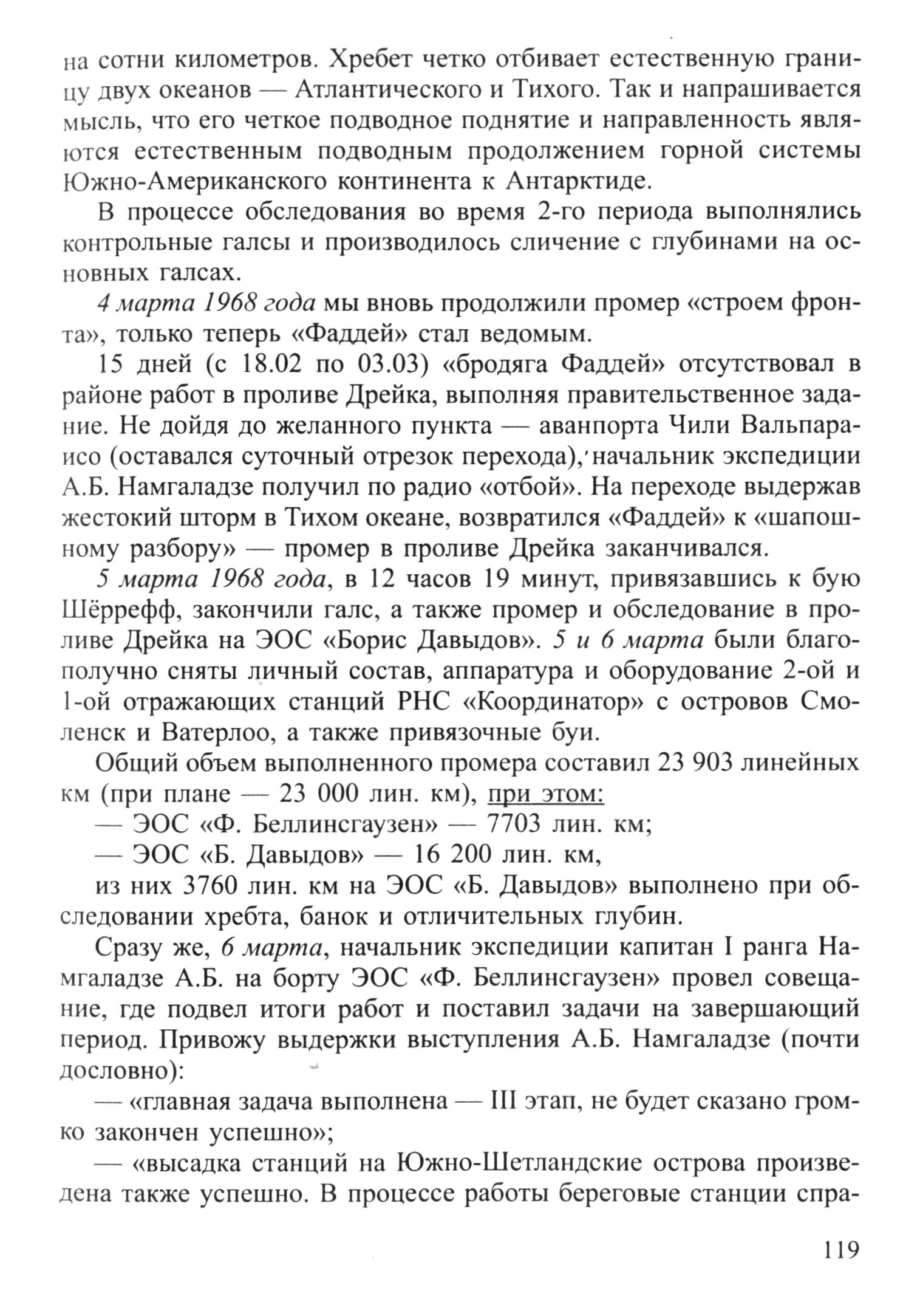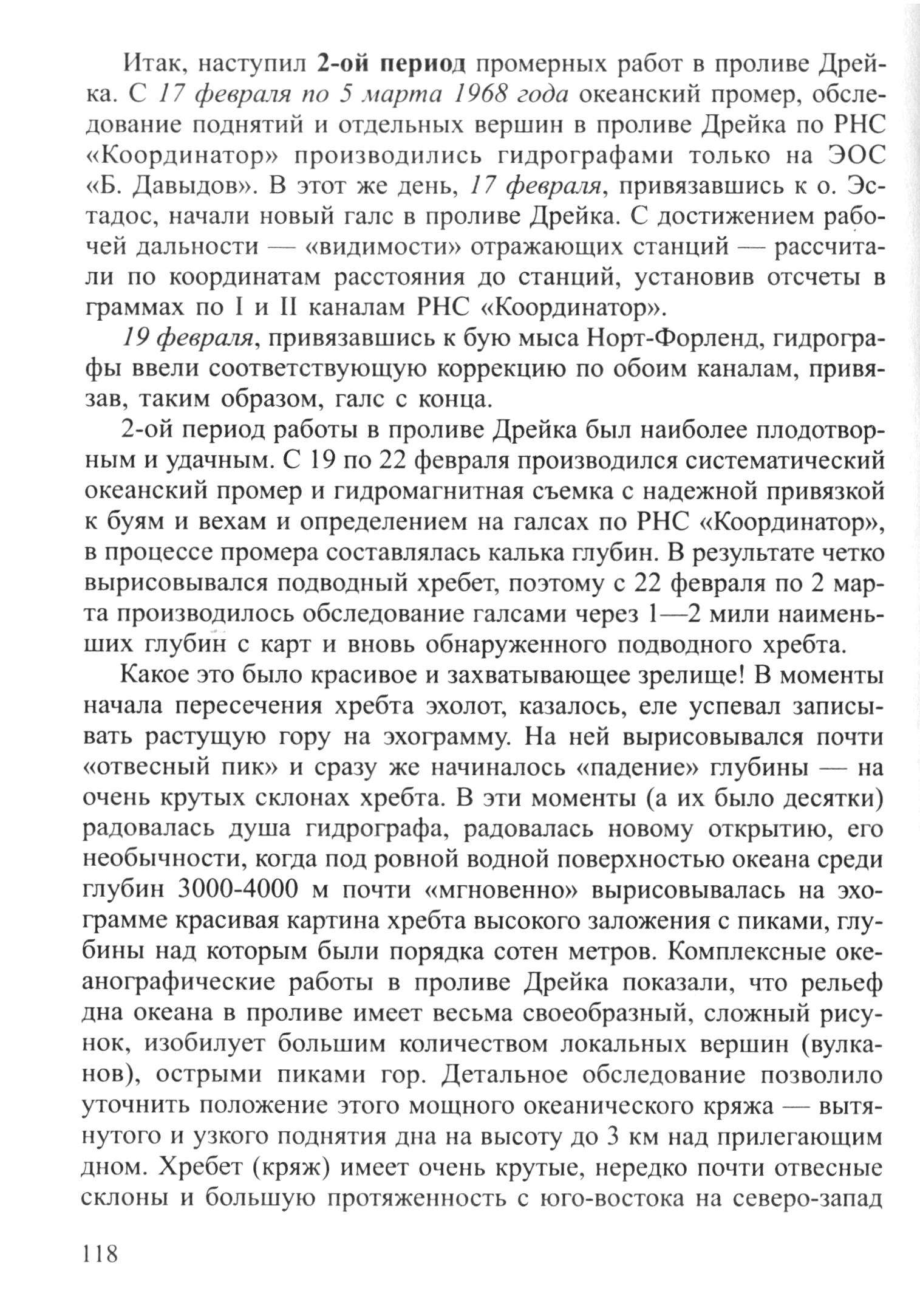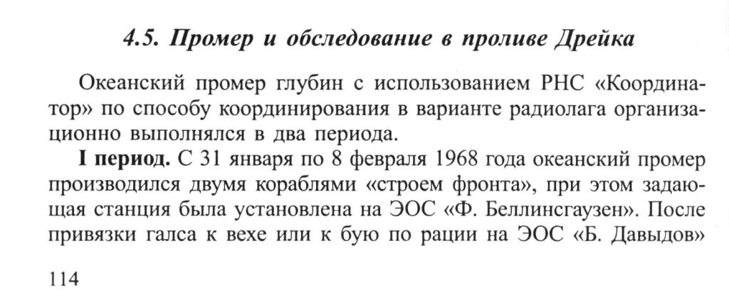 4.5. Промер и обследование в проливе ДрейкаОкеанский промер глубин с использованием РНС «Координатор» по способу координирования в варианте радиолага организационно выполнялся в два периода.