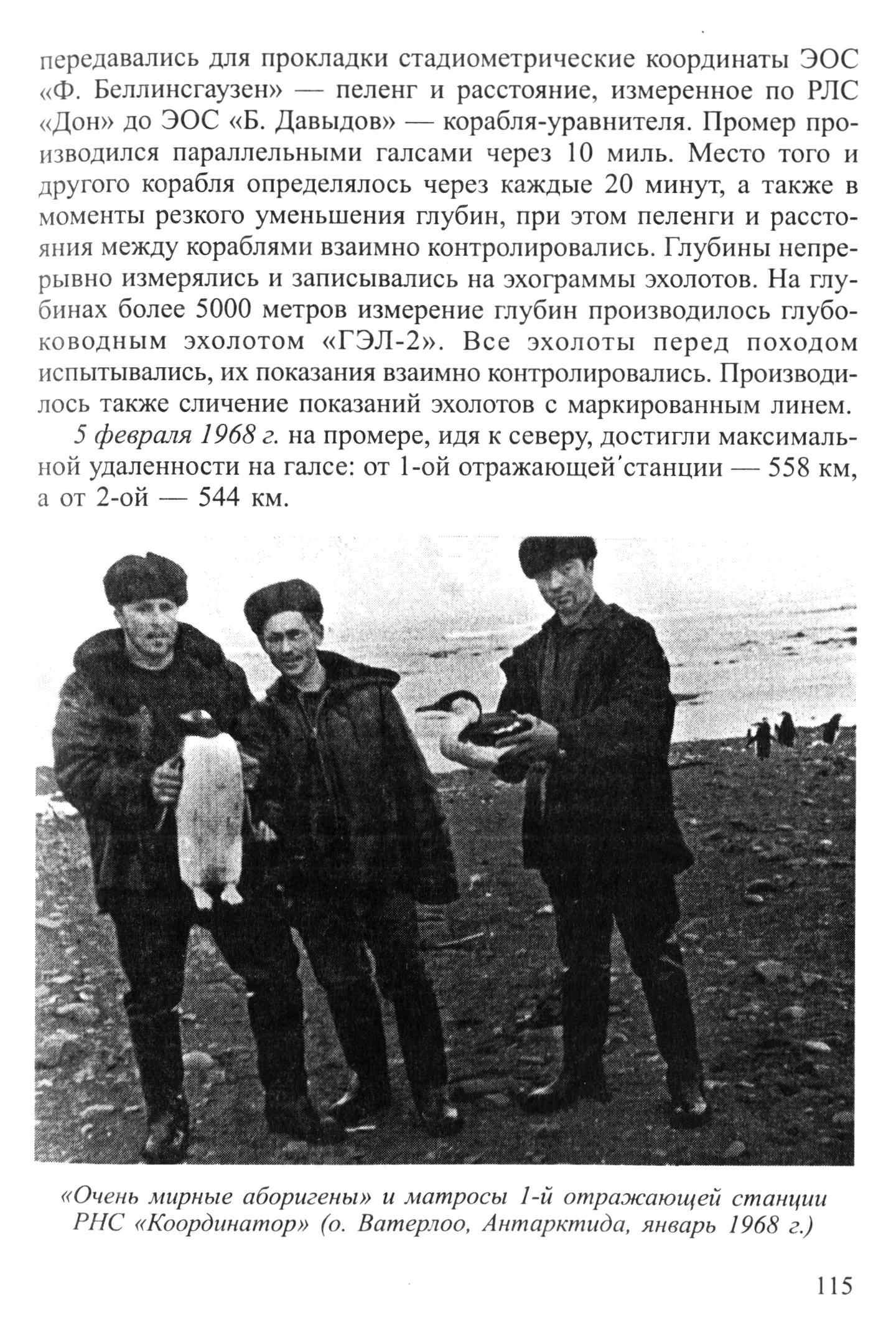 5 февраля 1968 г. на промере, идя к северу, достигли максимальной удаленности на галсе: от 1-ой отражающей станции — 558 км, а от 2-ой — 544 км.