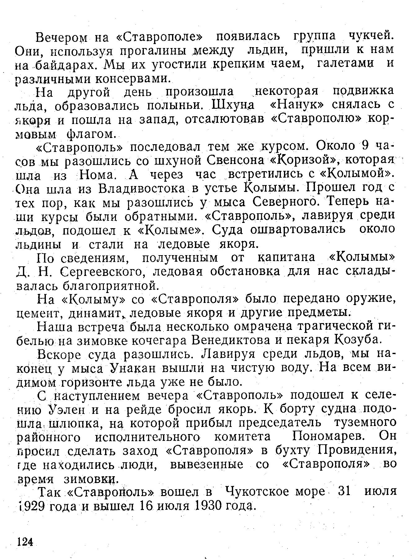 Так «Ставрополь» вошел в Чукотское море 31 июля 1929 года и вышел 16 июля 1930 года.