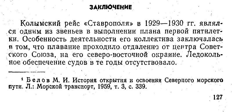 Колымский рейс «Ставрополя» в 1929—1930 гг. являлся одним из звеньев в выполнении плана первой пятилетки. Особенность деятельности его коллектива заключалась в том, что плавание проходило отдаленно от центра Советского Союза, на его северо-восточной окраине. Ледокольное обеспечение судов в те годы отсутствовало.