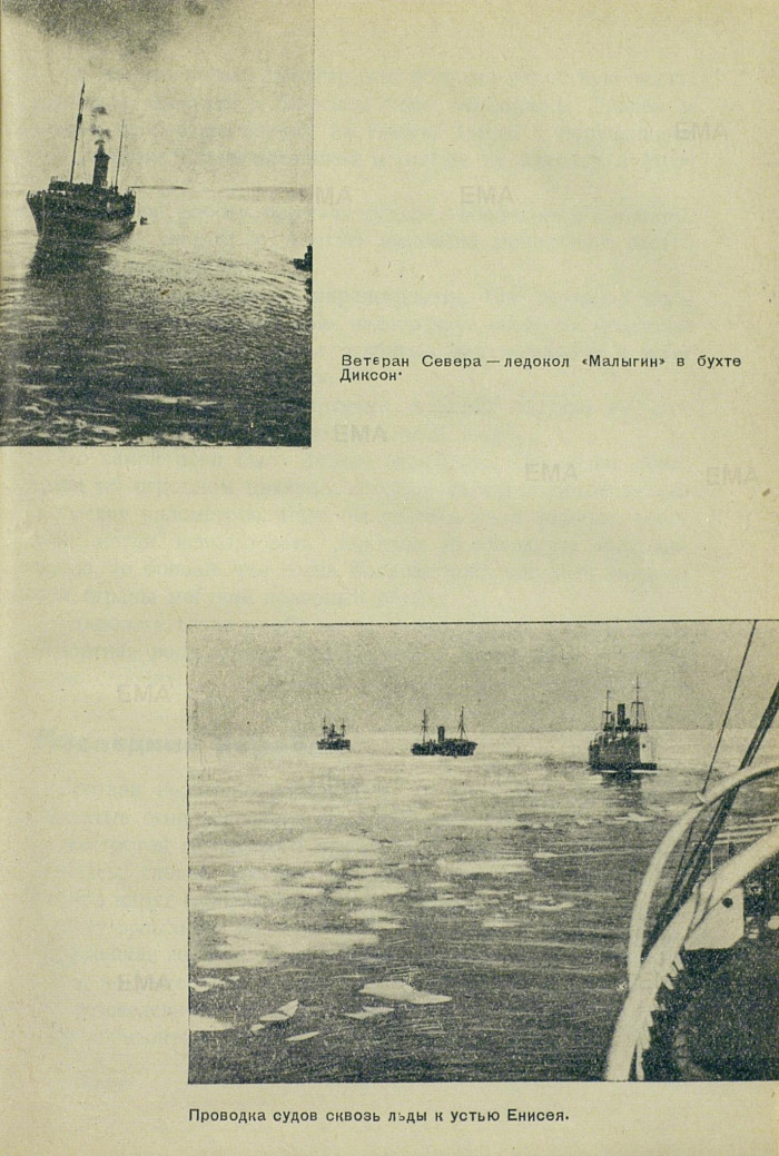 В Енисейском заливе многомильными шагами подвигался леденящий мороз, и двум судам, шедшим иод советским флагом, уже требовалась помощь ледокола.