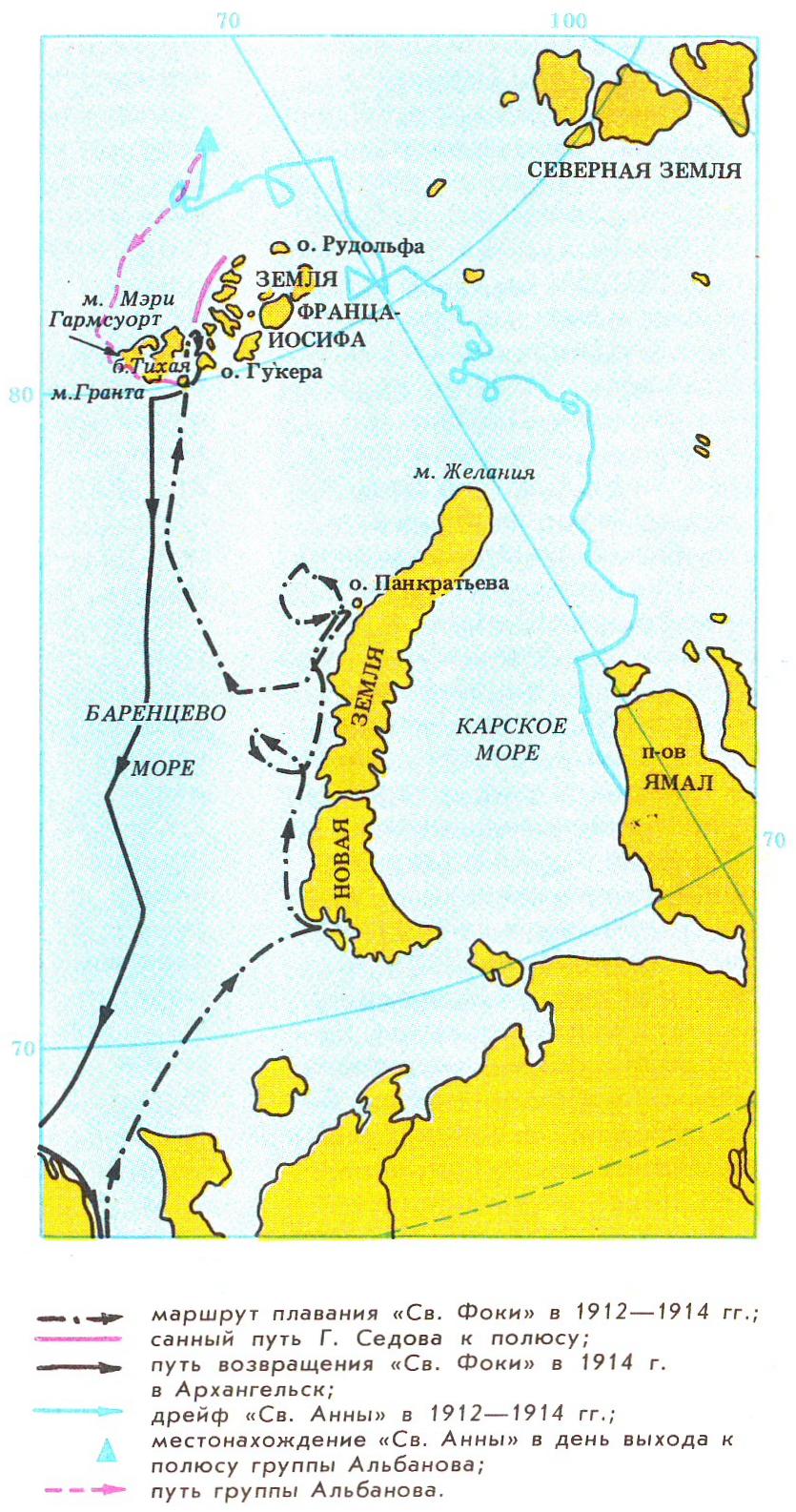 В декабре 1913 г. «Св. Анну» вынесло в Арктический бассейн восточнее Земли Франца-Иосифа, и направление ее дрейфа сменилось с северного на западное.