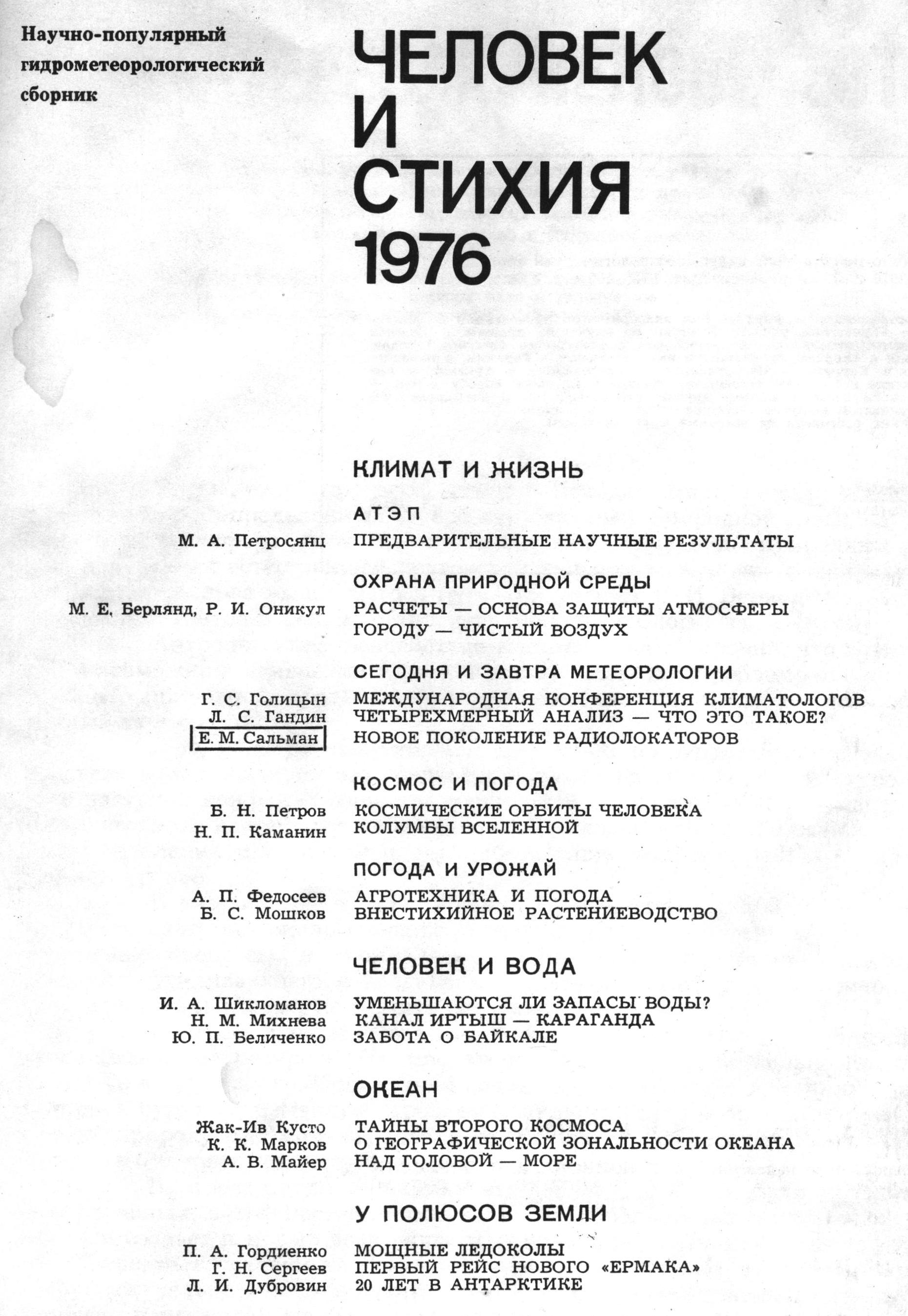 Научно-популярный гидрометеорологический сборник на 1976 г.