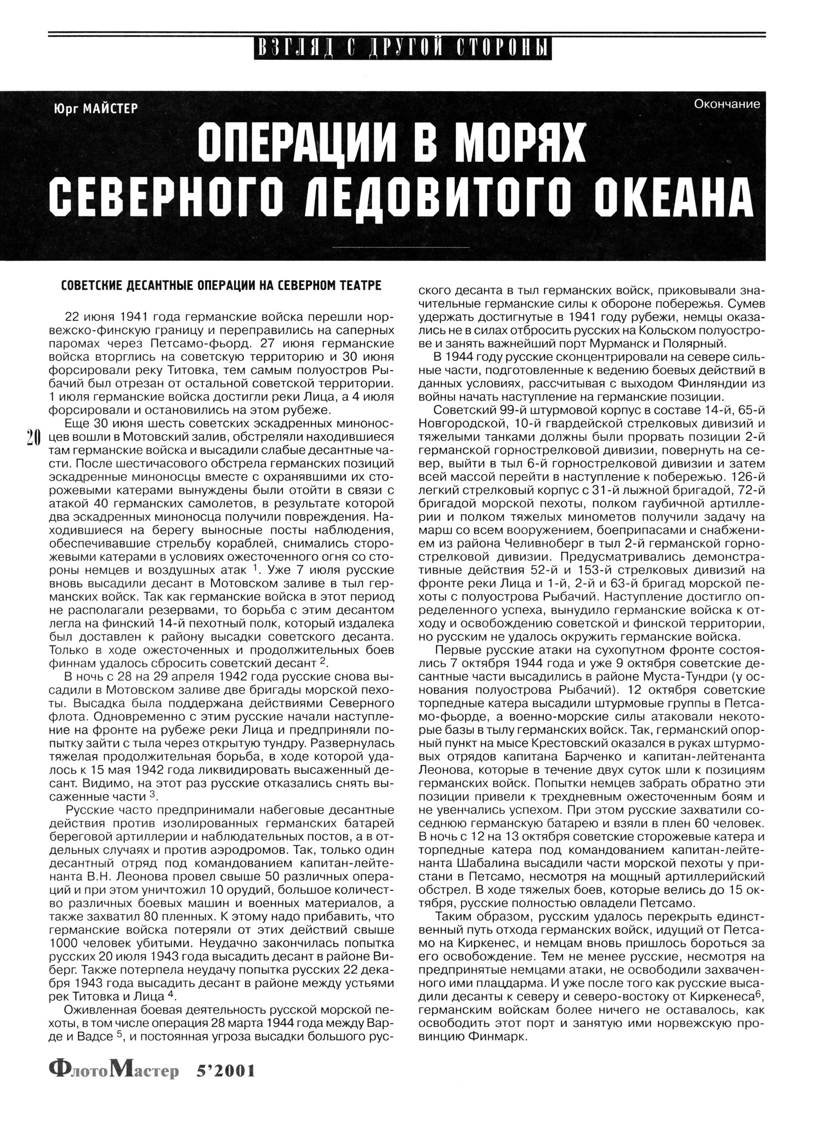 {5 Никакой операции в указанном Ю. Майстером районе в данные сутки не проводилось. Возможно имеется в виду высадка разведгруппы (101 человек) в заливе Маативуоно (юго-зап. побережье полуострова Рыбачий) 8 марта. Наши десантники без потерь захватили опорный пункт противника, уничтожив 18 и захватив в плен 6 германских солдат, а затем вернулись на катера.`}, и постоянная угроза высадки большого русского десанта в тыл германских войск, приковывали значительные германские силы к обороне побережья. Сумев удержать достигнутые в 1941 году рубежи, немцы оказались не в силах отбросить русских на Кольском полуострове и занять важнейший порт Мурманск и Полярный.