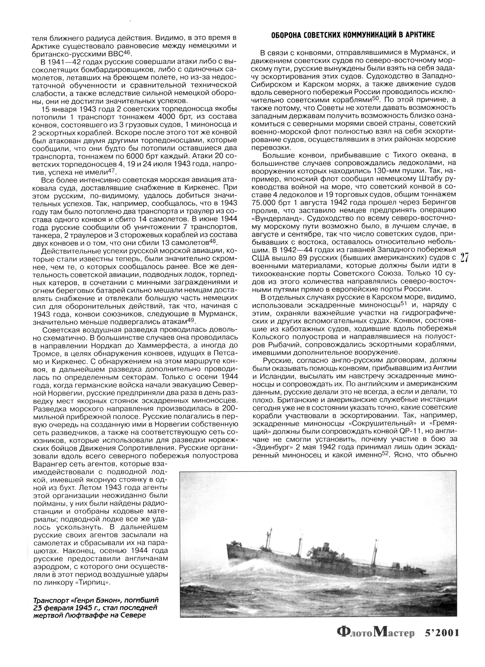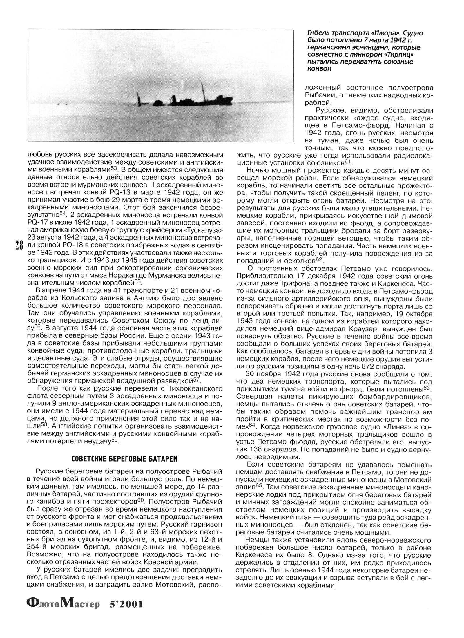 Русские, видимо, обстреливали практически каждое судно, входящее в Петсамо-фьорд. Начиная с 1942 года, огонь русских, несмотря на туман, даже ночью был очень точным, так что можно предположить, что русские уже тогда использовали радиолокационные установки союзников