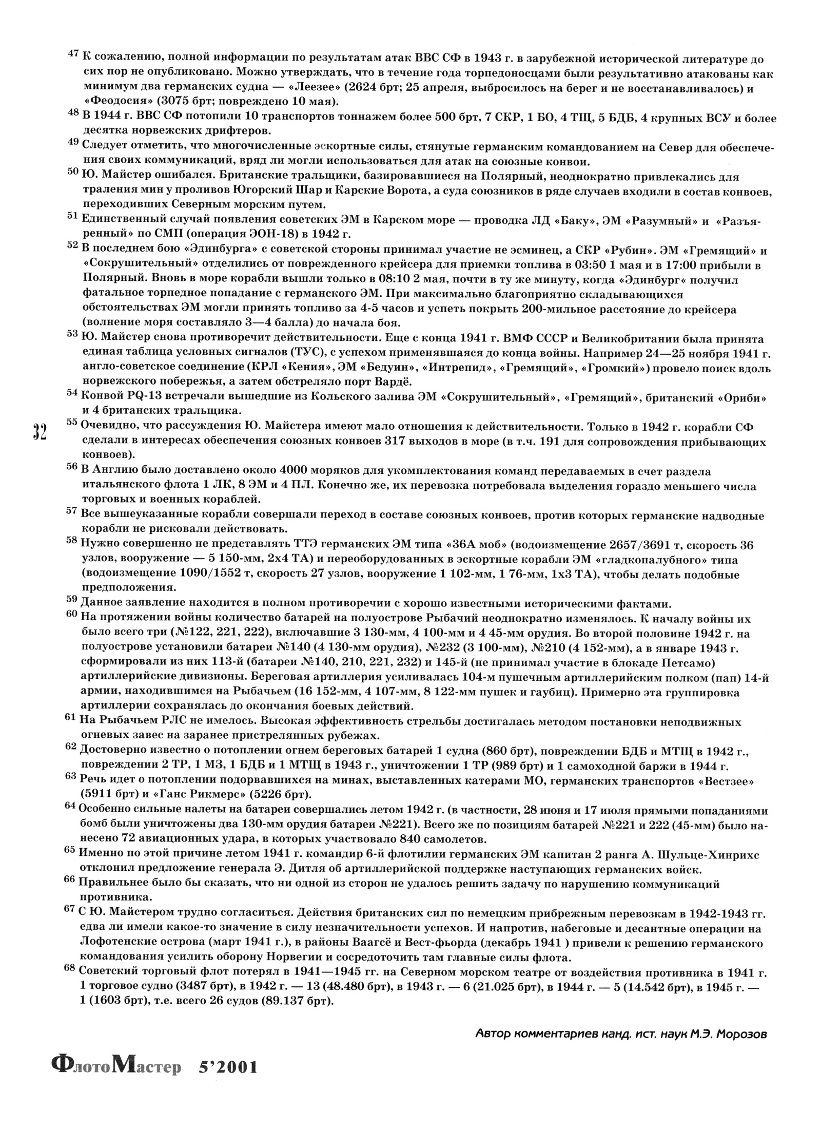 {55 Очевидно, что рассуждения Ю. Майстера имеют мало отношения к действительности. Только в 1942 г. корабли СФ сделали в интересах обеспечения союзных конвоев 317 выходов в море (в т.ч. 191 для сопровождения прибывающих конвоев).}.