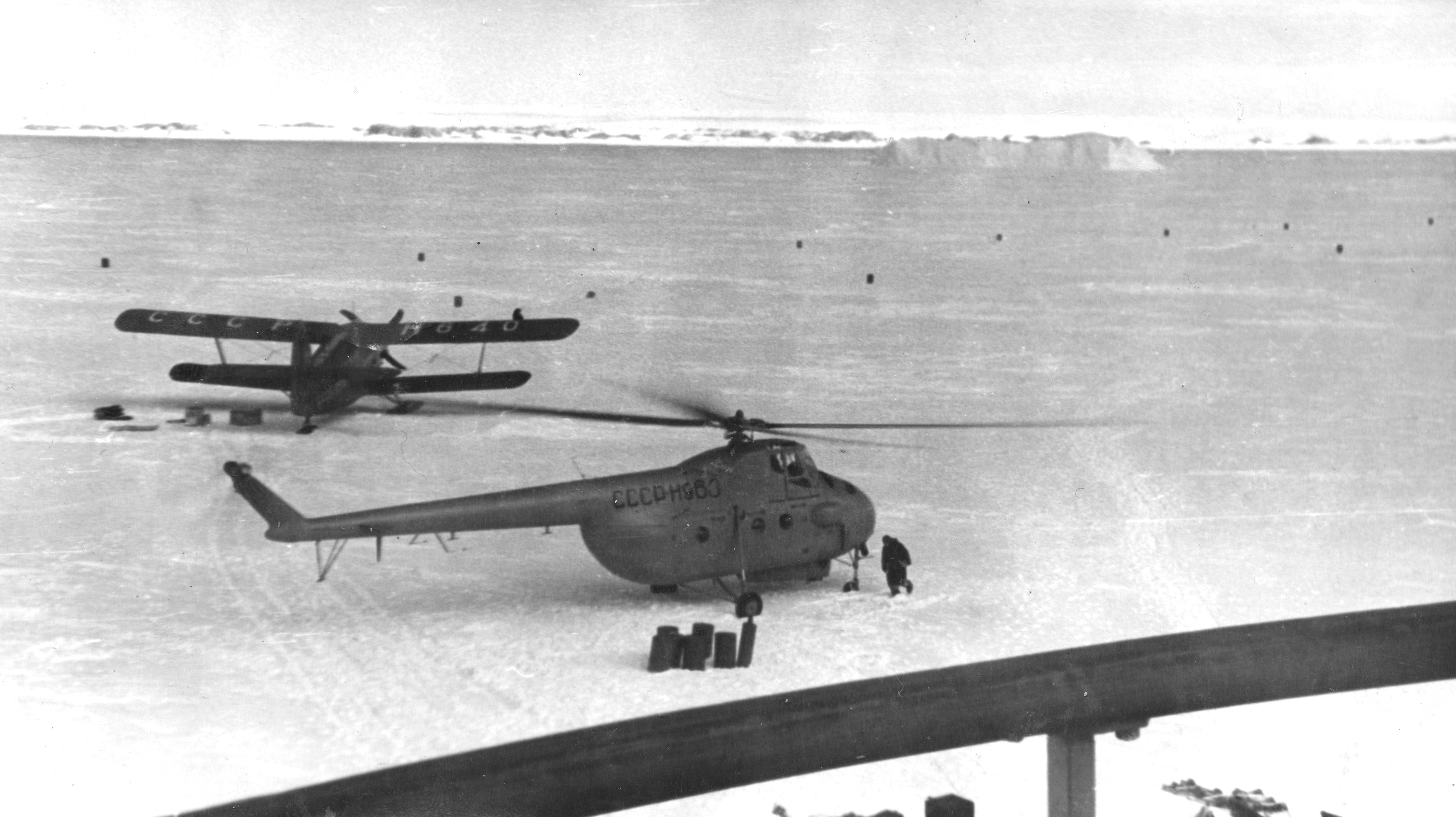 Нас, авиаторов с двух самолетов «Ан-2», утром, в девять часов, на катере перевезли в Мирный, где стояли наши самолеты. Подготовив их, стали летать. Мы экипажем Каминского делали аэрофотосъемку, а экипаж Полякова выполнял транспортные работы и ледовую разведку. За время полетов садились на заправку бензином на западном леднике в районе «Васюки», там, где собирали самолеты. Этот ледник за неделю, как мы от-туда улетели, сильно изменился – большие поля льда откололись и отплыли в море.