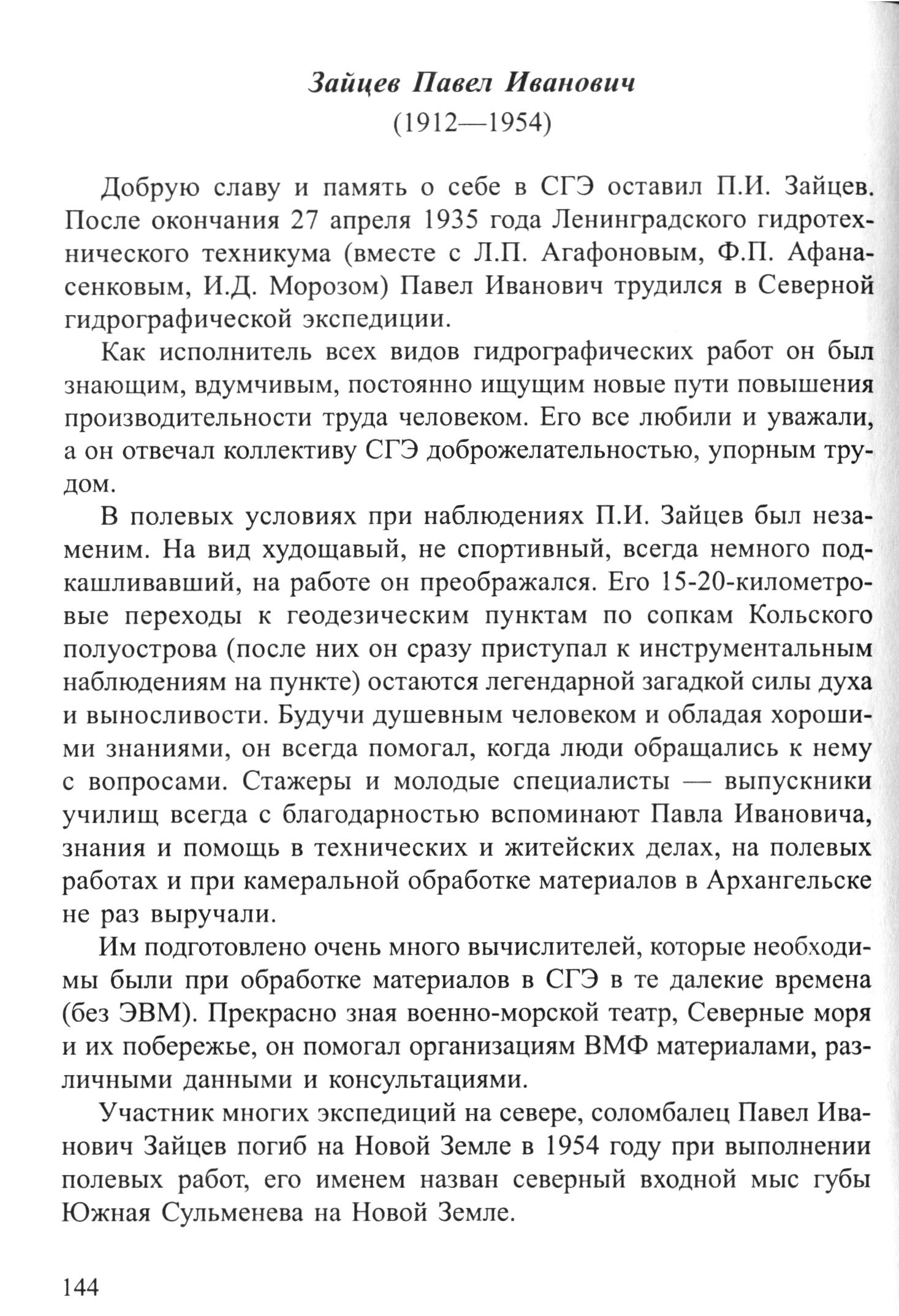 Участник многих экспедиций на севере, соломбалец Павел Иванович Зайцев погиб на Новой Земле в 1954 году при выполнении полевых работ, его именем назван северный входной мыс губы Южная Сульменева на Новой Земле.