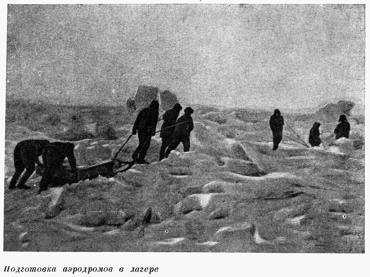 Решили переправить «Ш-2» (самолет Бабушкина) на аэродром. Будем готовить к полетам нашу "стрекозу". Тащили ее на руках, вырубая, где надо, проходы в ропаках, засыпая трещины.