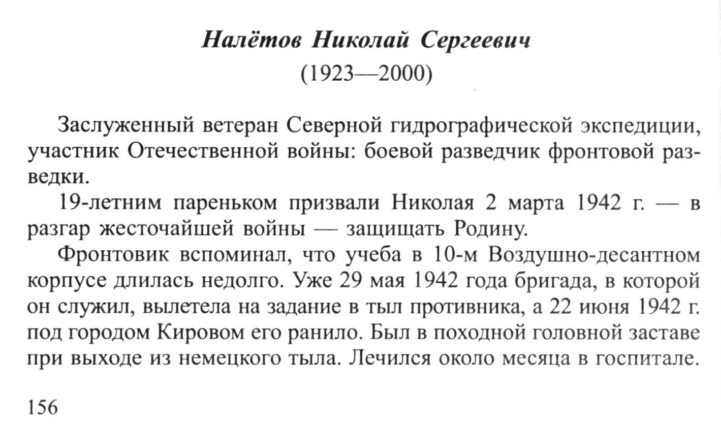 Заслуженный ветеран Северной гидрографической экспедиции, участник Отечественной войны: боевой разведчик фронтовой разведки.