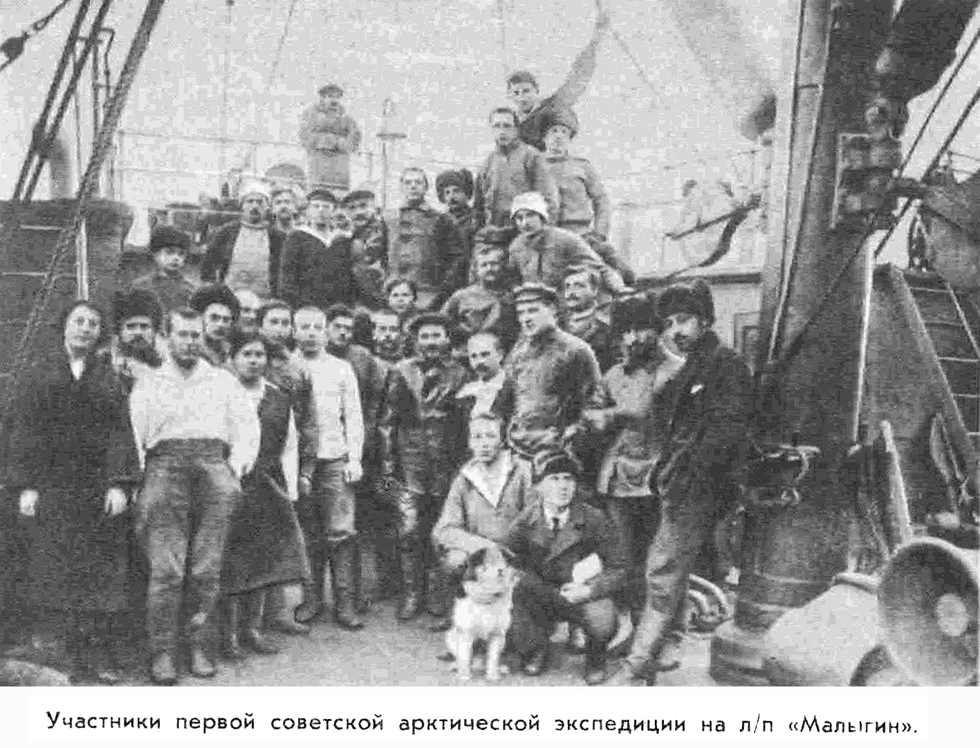 Соборная пристань постепенно заполнялась народом, пришли провожавшие нас в плавание. Родственники членов команды, представители губисполкома, губкома РКП(б) и просто публика, желавшая посмотреть наш отход. Для Архангельска это было большим событием, ведь со времени экспедиции лейтенанта Седова «Малыгин» явился первым кораблем, на котором экспедиция отправлялась в те же далекие края. Быть может, в толпе, стоявшей на пристани, находился кто-либо из тех, кто в свое время вот так же провожал «Св. Фоку».