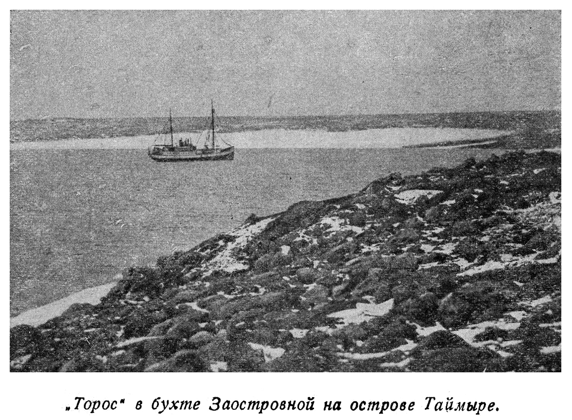 На берег были заведены швартовы, закрепленные за громадные валуны. Наши собаки с визгом и лаем носились по острову, получив, наконец, возможность размять свои лапы. Дождь усилился.... Перед тем как сойти на берег, я получил из Управления грустную телеграмму: «Оставление «Тороса» в Карском море с зимовкой в Архангельске решено окончательно»....