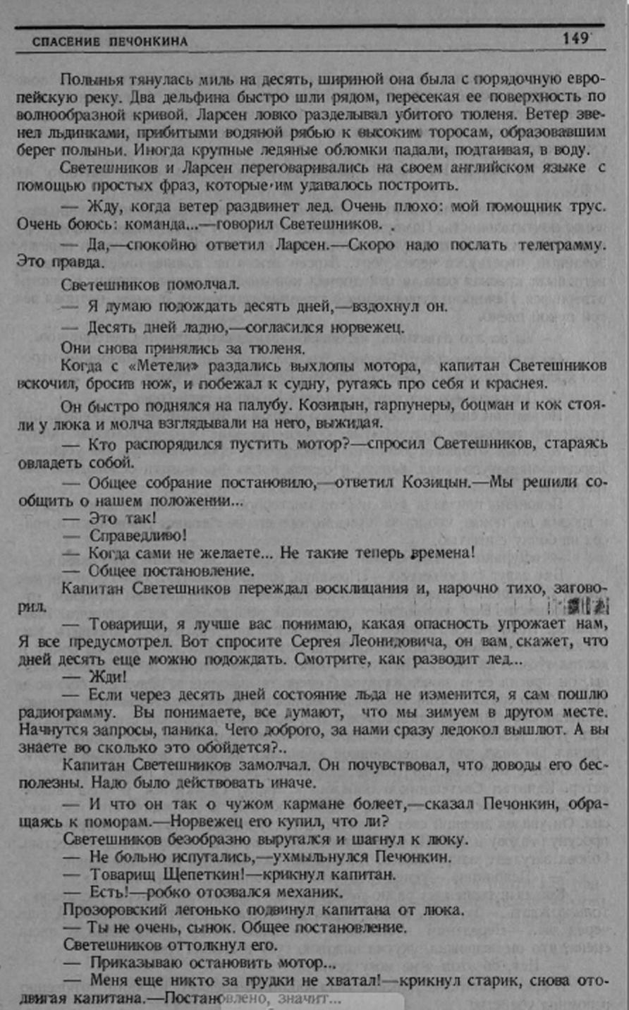 — Жду, когда ветер раздвинет лед. Очень плохо: мой помощник трус. Очень боюсь: команда... — говорил Светешников..
