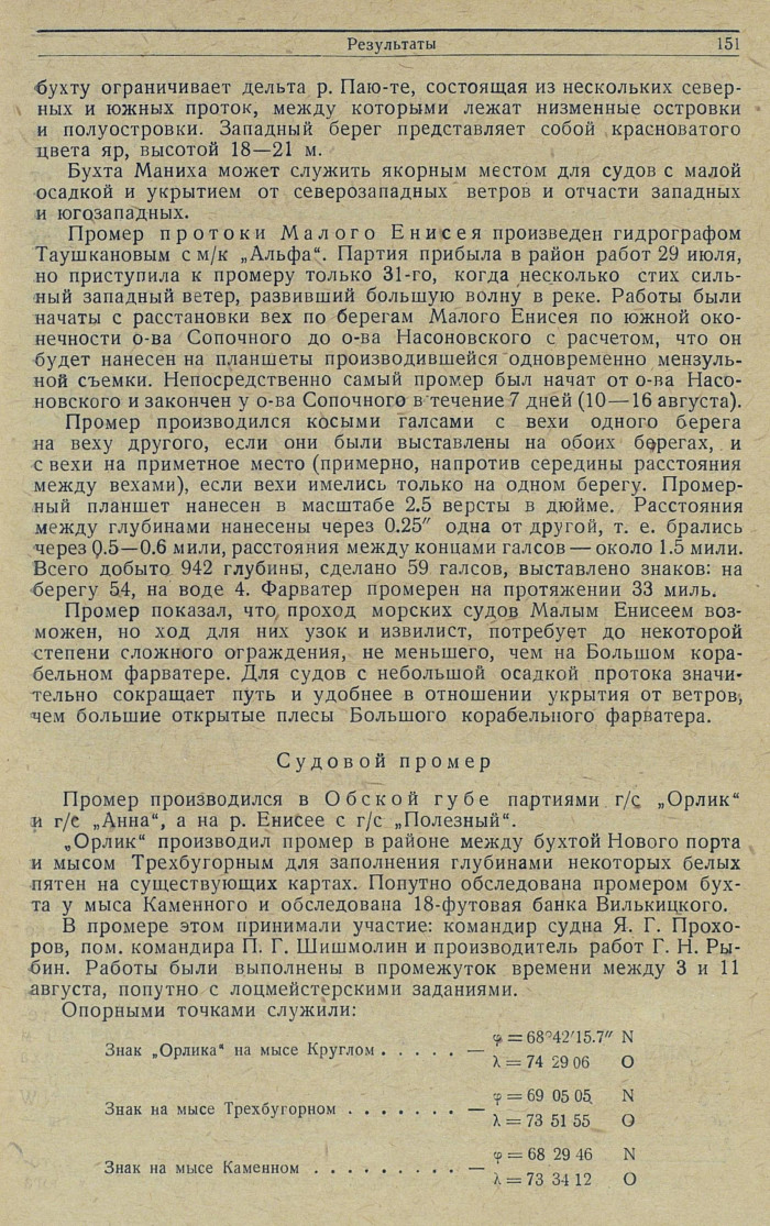 Шлюпочный промер в кампанию 1924 г. производился в Хаманельской Оби и в Малом Енисее.