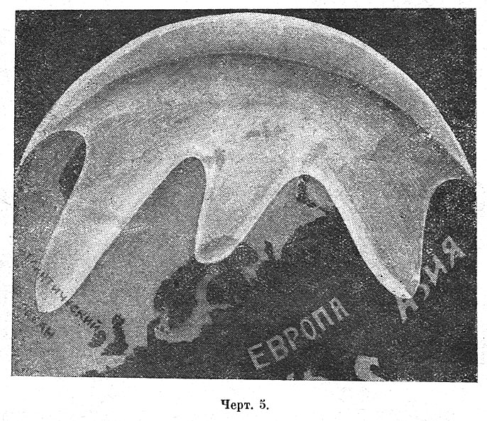 Если бы на земном шаре условия были так же просты, как в нашем опыте, то мы имели бы на экваторе, где нагретый воздух поднимается вверх, относительно низкое давление воздуха (т. е. здесь располагался бы так называемый барометрический минимум), а около полюса, где воздух охлаждается и опускается, — относительно высокое давление (барометрический максимум). На самом деле циркуляция воздуха на земном шаре происходит гораздо сложнее, чем показывает наш опыт, потому что на движение воздуха влияет целый ряд привходящих факторов, из которых важнейшие— вращение земли и неравномерное распределение суши и моря. Вследствие вращения земли происходит накопление воздуха в субтропиках (примерно, в широте 35°), где атмосферное давление увеличивается и образуется так называемый «затропический барометрический максимум». Если мы изобразим распределение давления воздуха на разрезе от экваторачерез северный полюс к экватору в виде кривой, то получим линию изображенную на чертеже 3.
