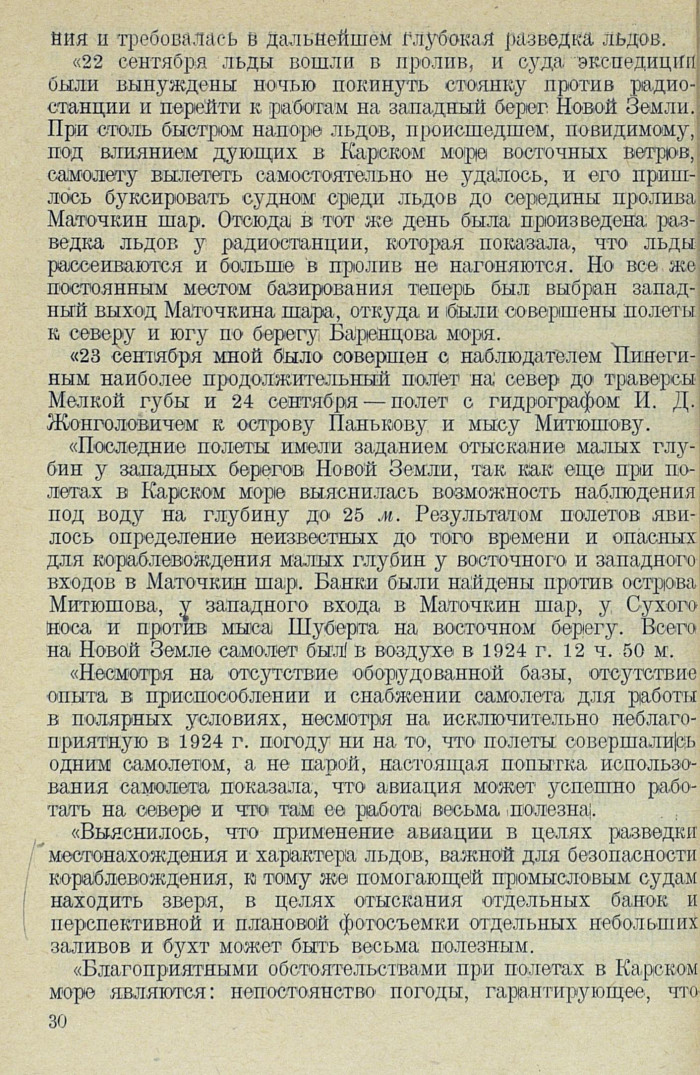 действительна, так как видимость с корабля не превышает того расстояния, которое плавающие льды могут пройти в течение суток. Гидрографические работы, обеспечивающие безопасность кораблевождения у берегов Новой Земли, полуострова Ямал, островов и проливов Карского моря, недостаточны и не скоро еще будут удовлетворять мореплавателей. Во всех этих случаях, и даже в последнем, авиация была в состоянии оказать большую помощь.