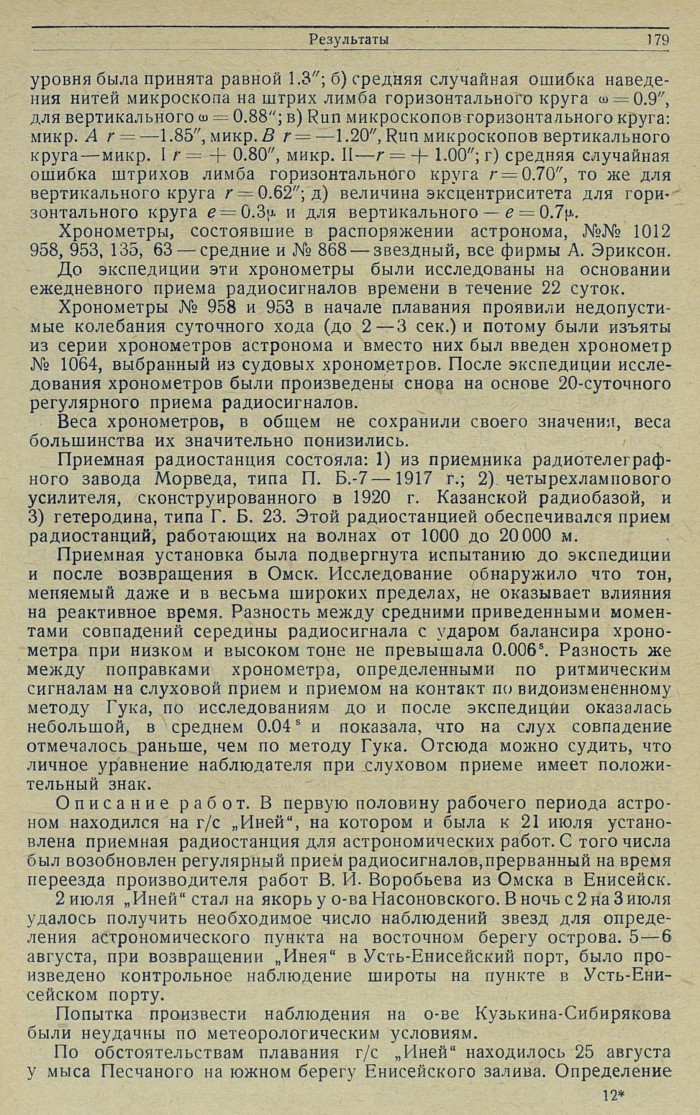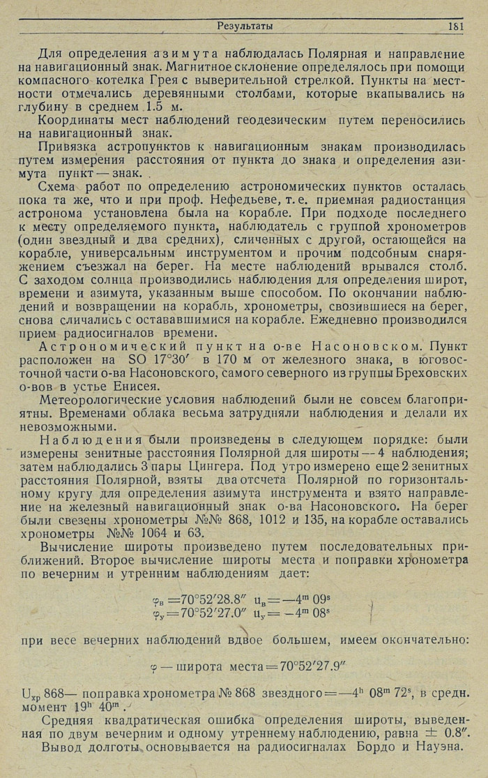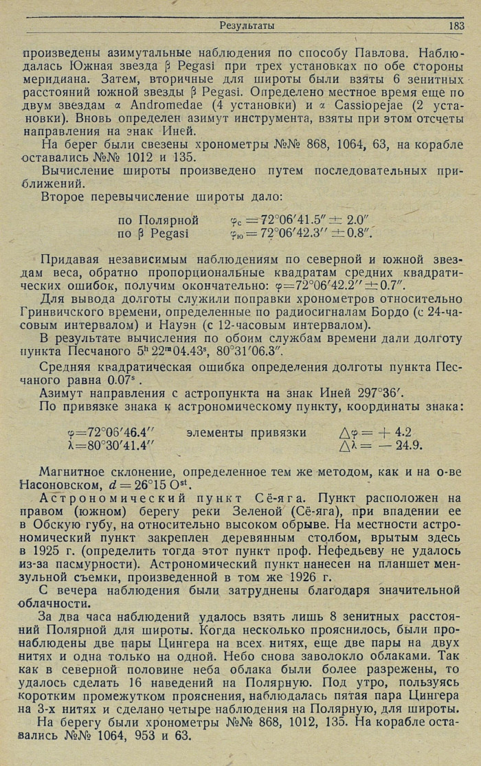 РезультатыАстрономические наблюденияКак уже было отмечено выше, работавший в составе Отдельного Обь-Енисейского гидрографического отряда и экспедиций Убеко-Сибири в качестве астронома в течение 6 лет проф.