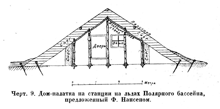 Вся обширная центральная часть Арктики занята глубоким морем, так называемым Полярным бассейном. Это море постоянно покрыто дрейфующим льдом, т.е. льдом, меняющим свое место под действием ветров и течений. Еще совсем недавно, в начале нашего века, мысль об устройстве на пловучих льдах Полярного бассейна постоянной станции являлась абсурдом, потому что. передвижение по этим льдам представляет очень большие затруднения, и о завозе в центральную часть Арктики строительных материалов и снабжения на собаках (ибо собаки были единственным существовавшим в то время средством передвижения в Арктике) не могло быть й речи. Американец Пири начиная с 1891 года с невероятным упорством стремился достичь северного полюса, что ему удалось только в 1909 году. Он пробыл на полюсе только сутки, так как, вследствие небольшого запаса провианта, который можно было увезти на собаках, должен был спешить в обратный путь. Следовательно, на одно только мимолетное посещение центральной части Арктики понадобилась работа в течение восемнадцати лет, работа, связанная с невероятными трудностями и лишениями, которая по справедливости может быть названа героической.